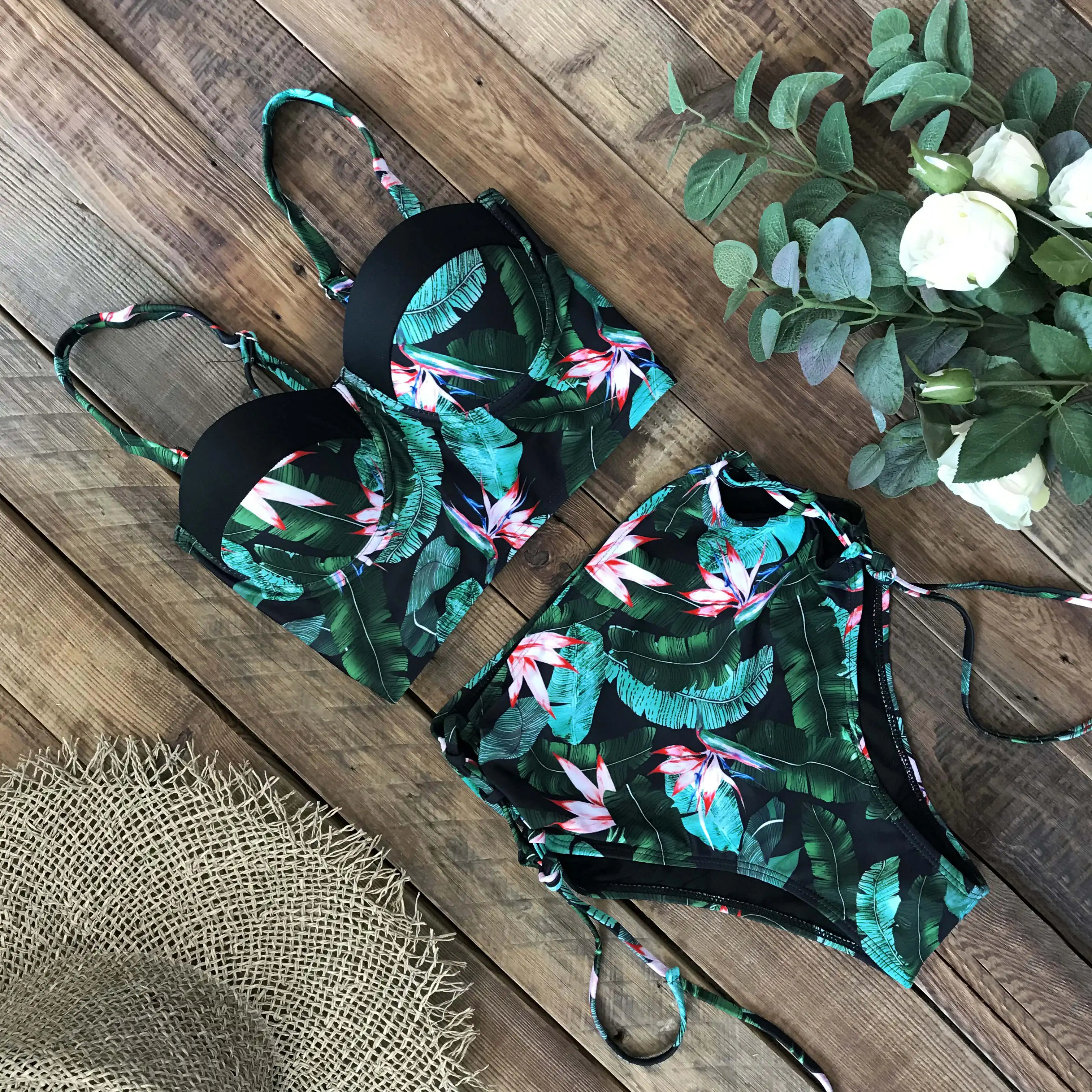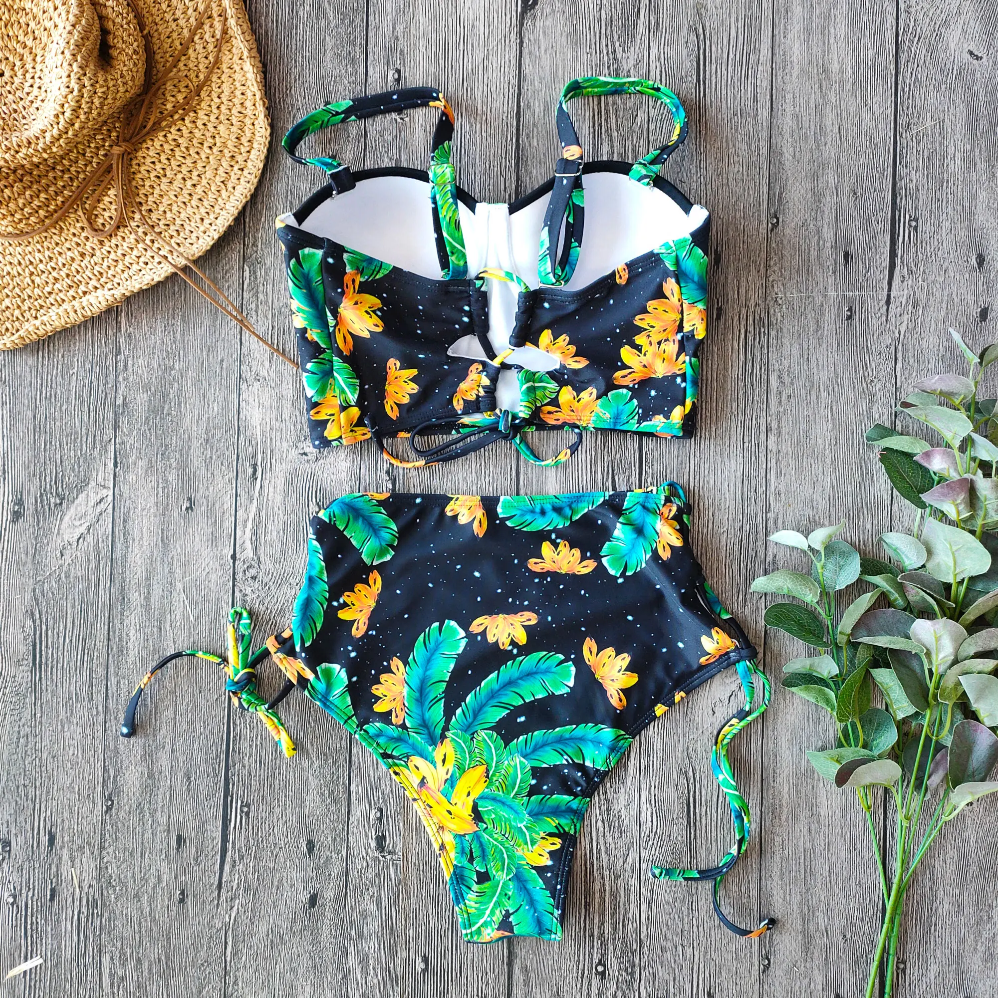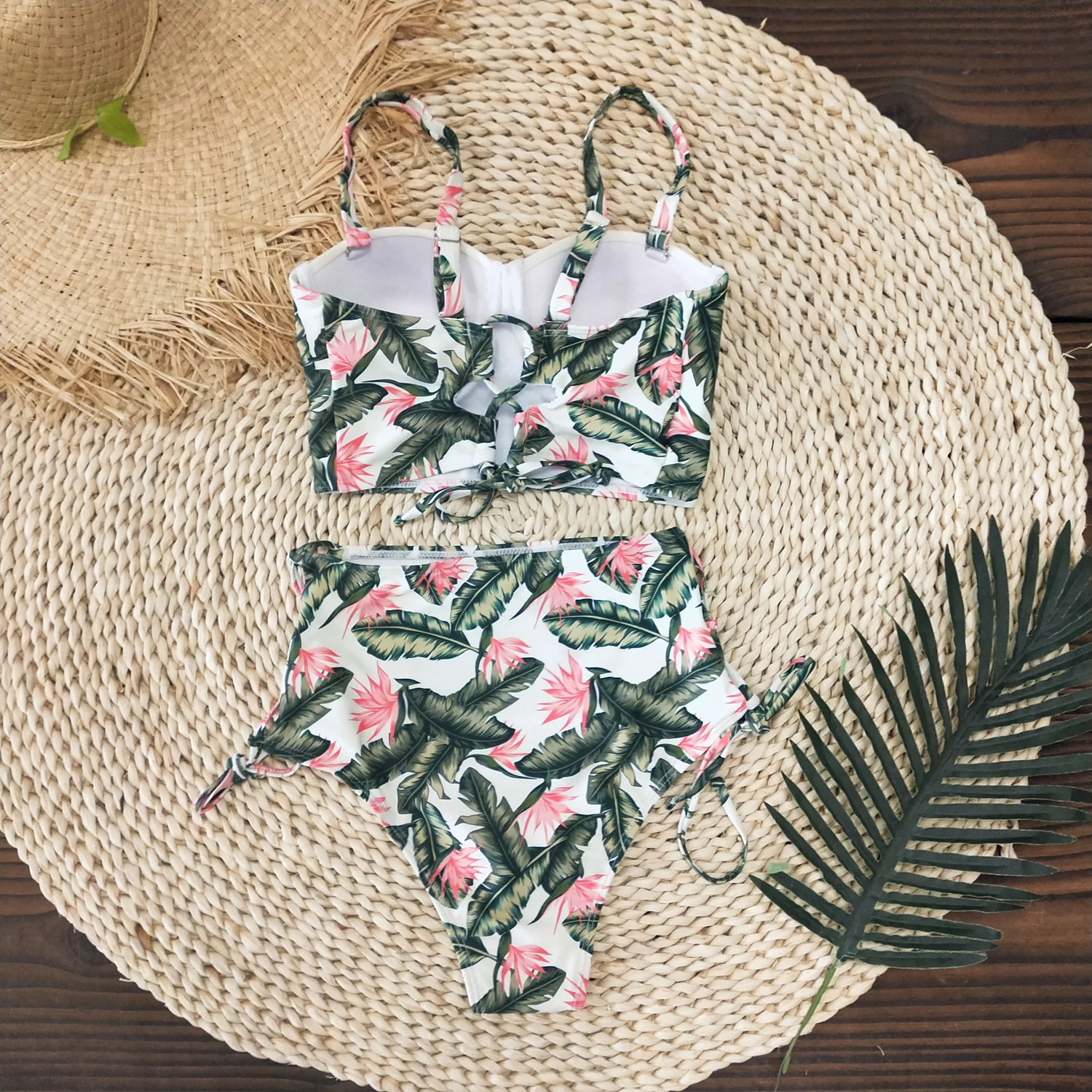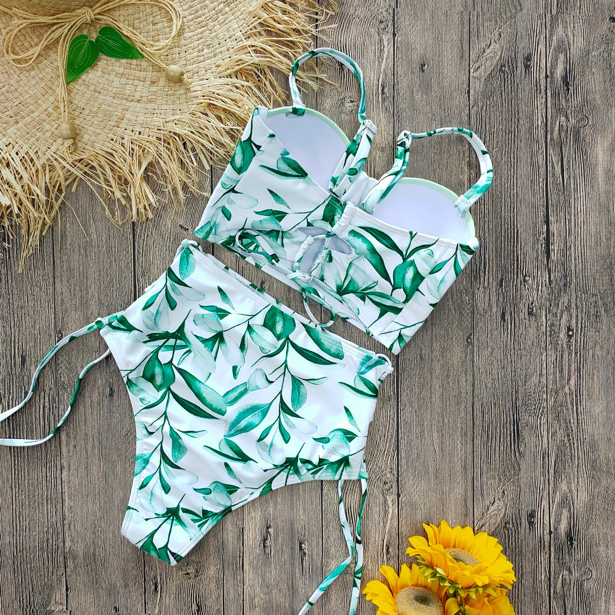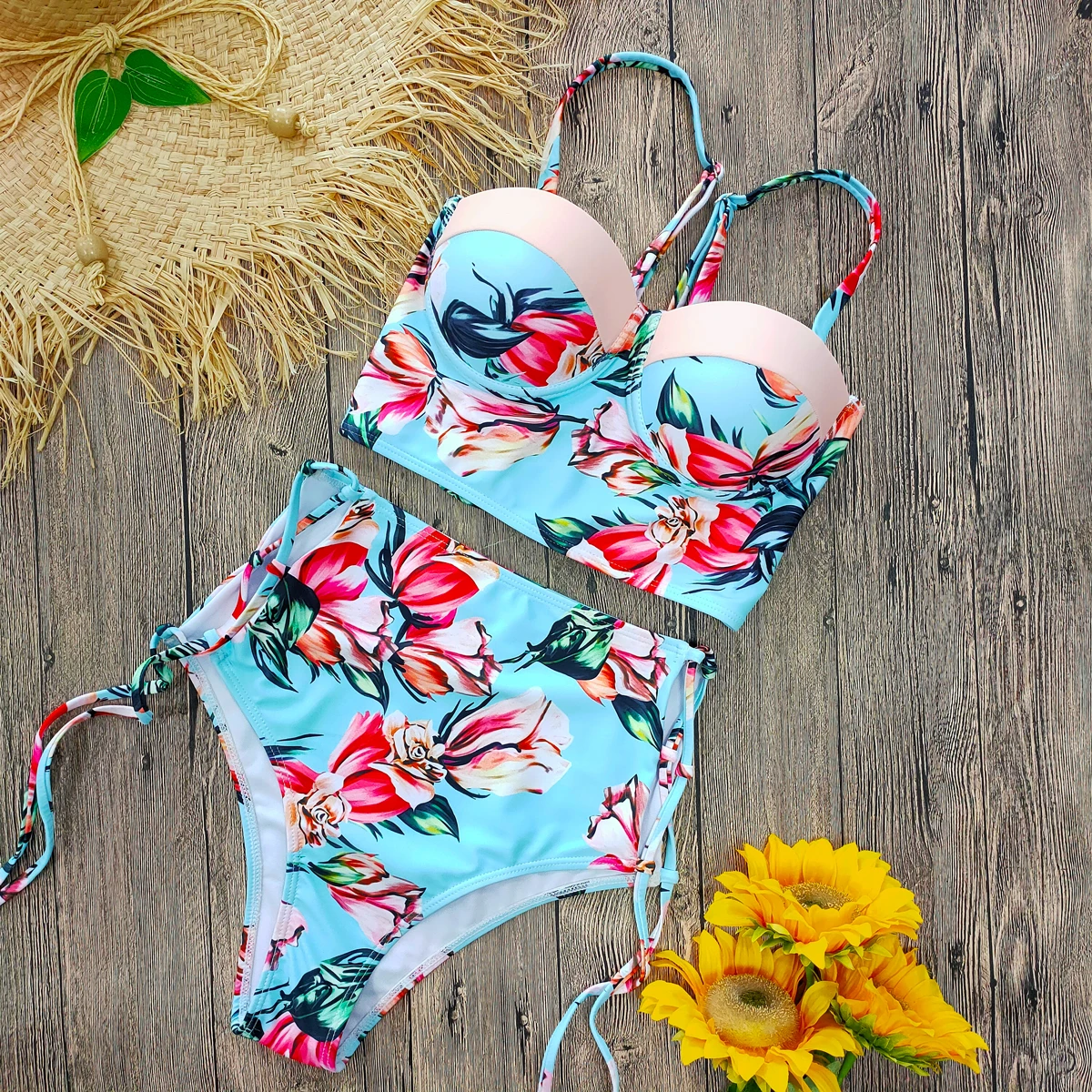 2021 новый купальник с высокой талией, женский купальник, бикини с принтом, бандажный комплект бикини, Мягкий купальный костюм, бикини
