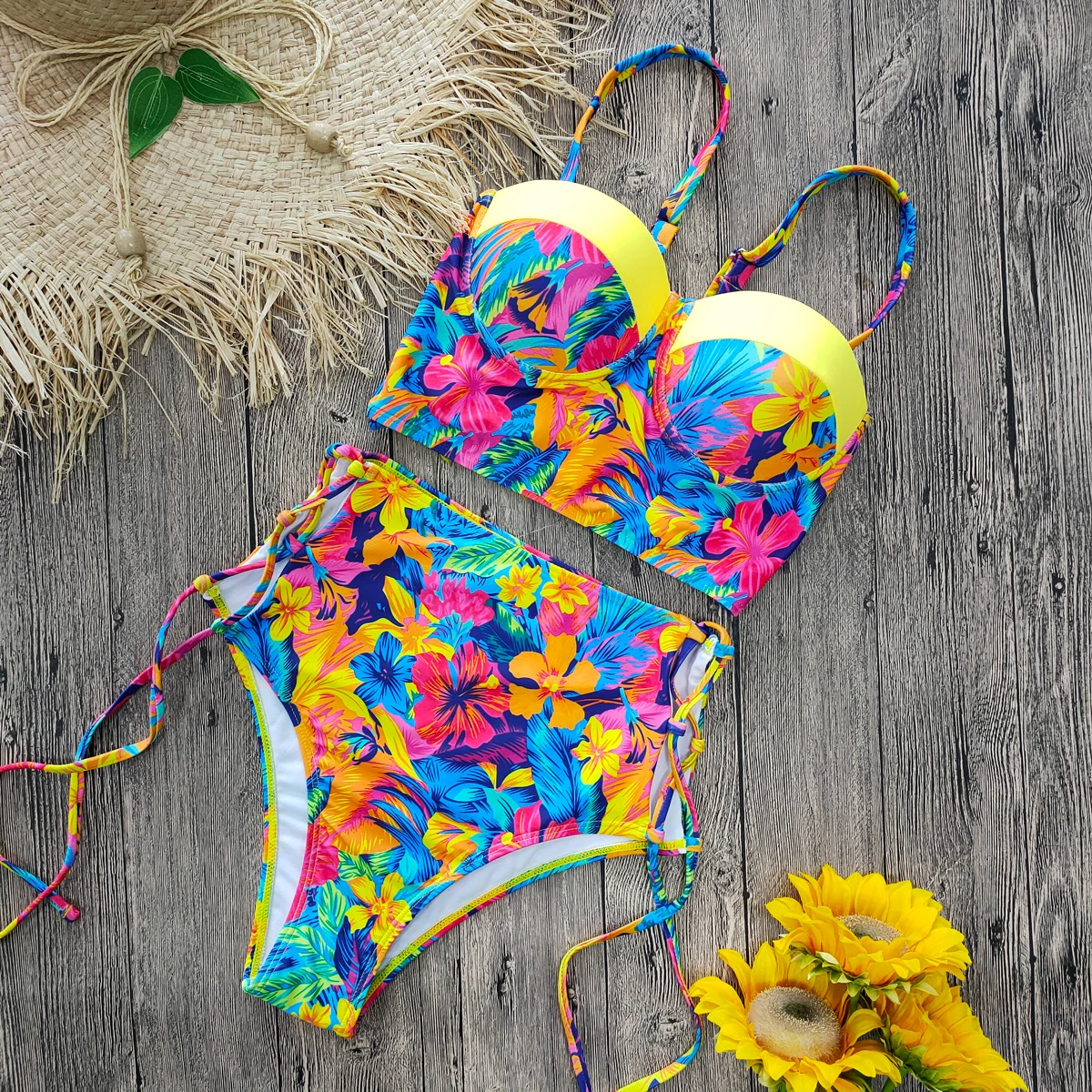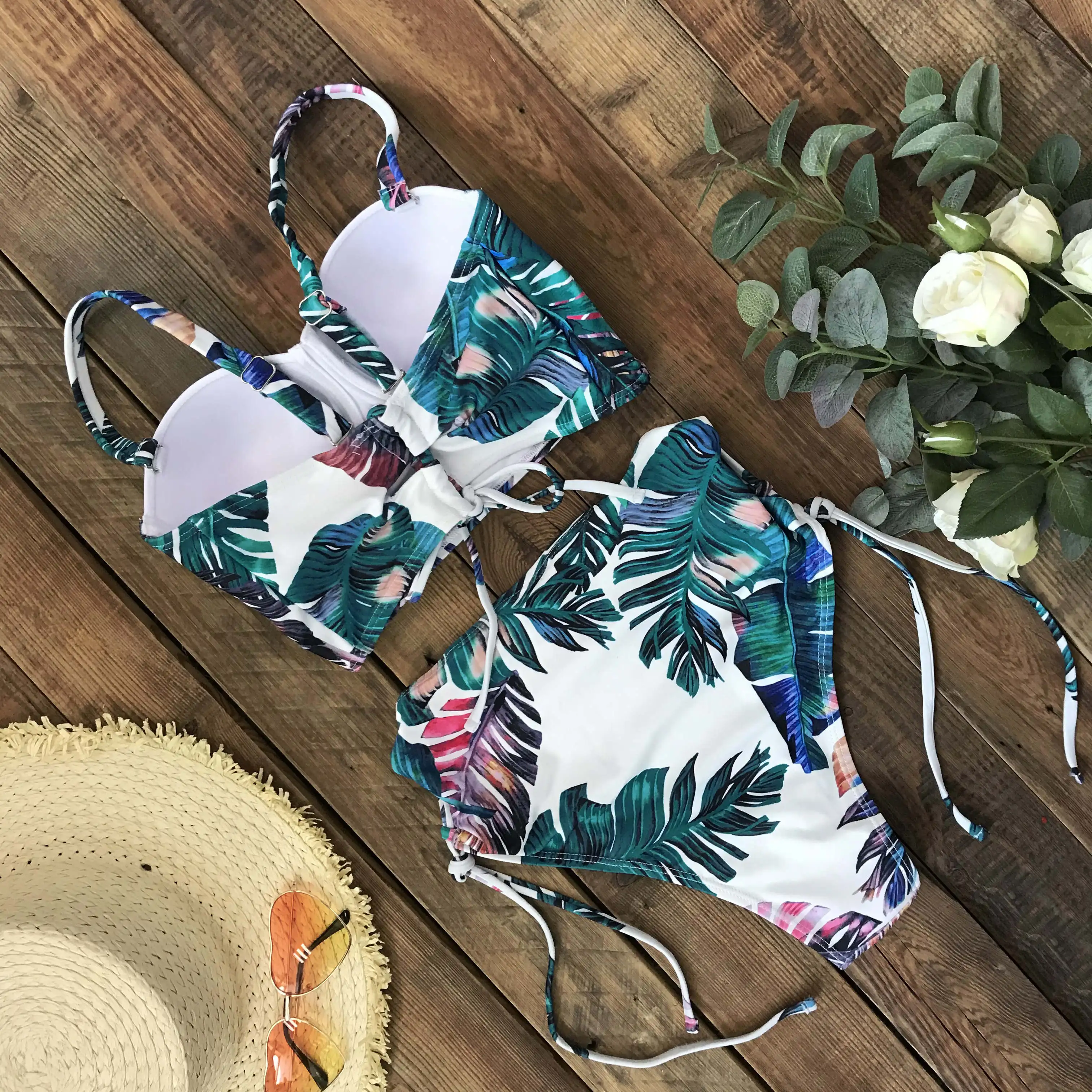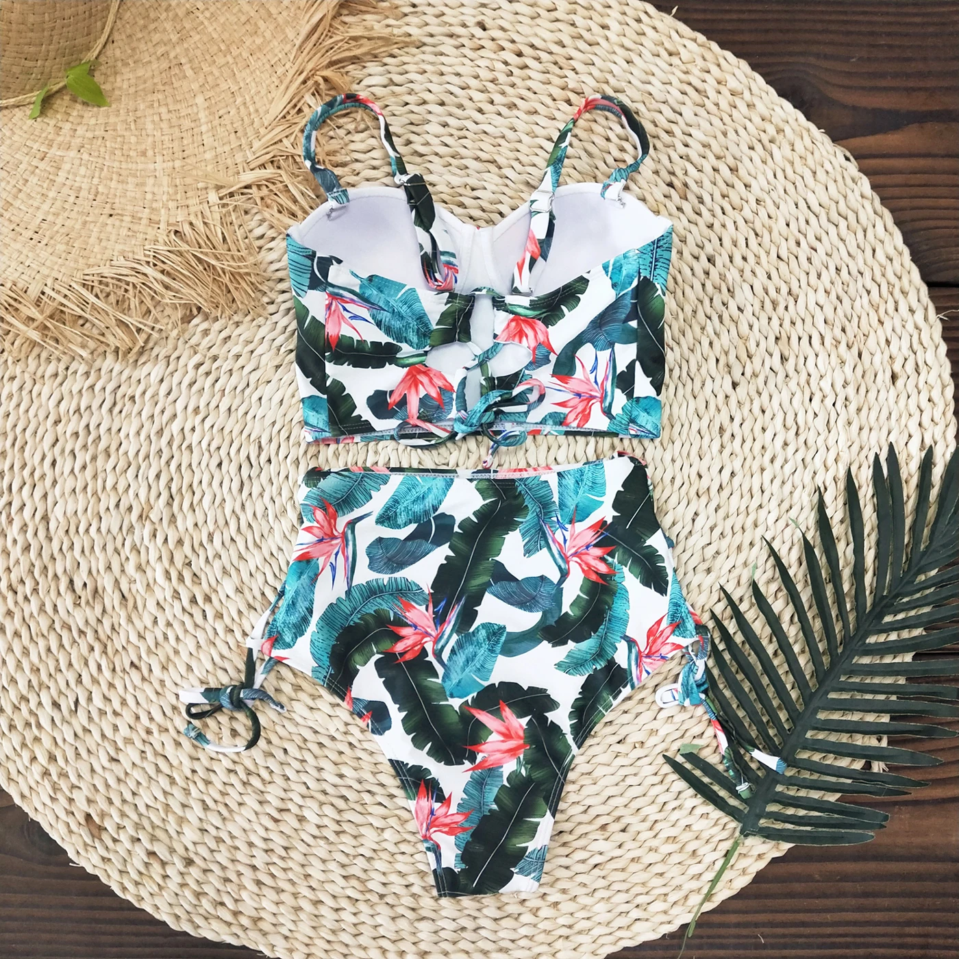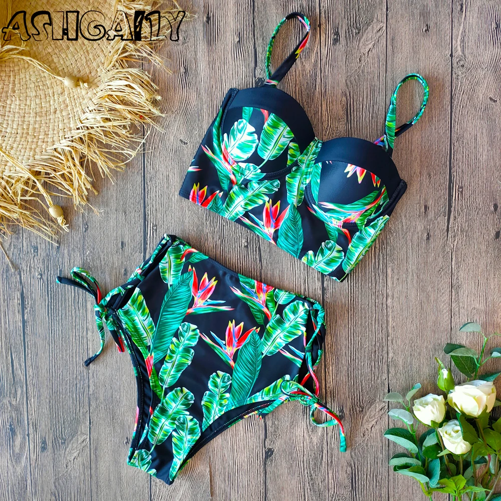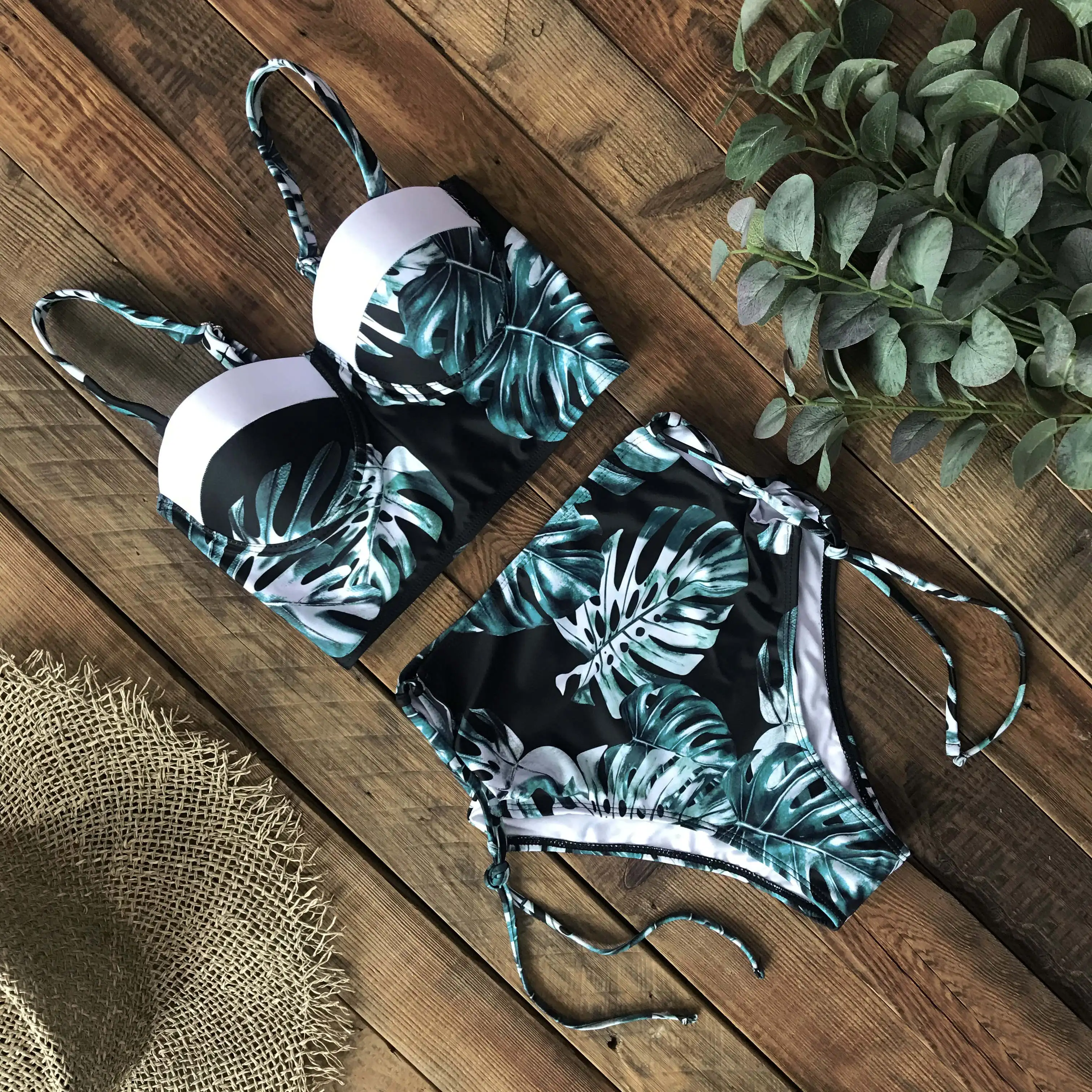 2021 новый купальник с высокой талией, женский купальник, бикини с принтом, бандажный комплект бикини, Мягкий купальный костюм, бикини