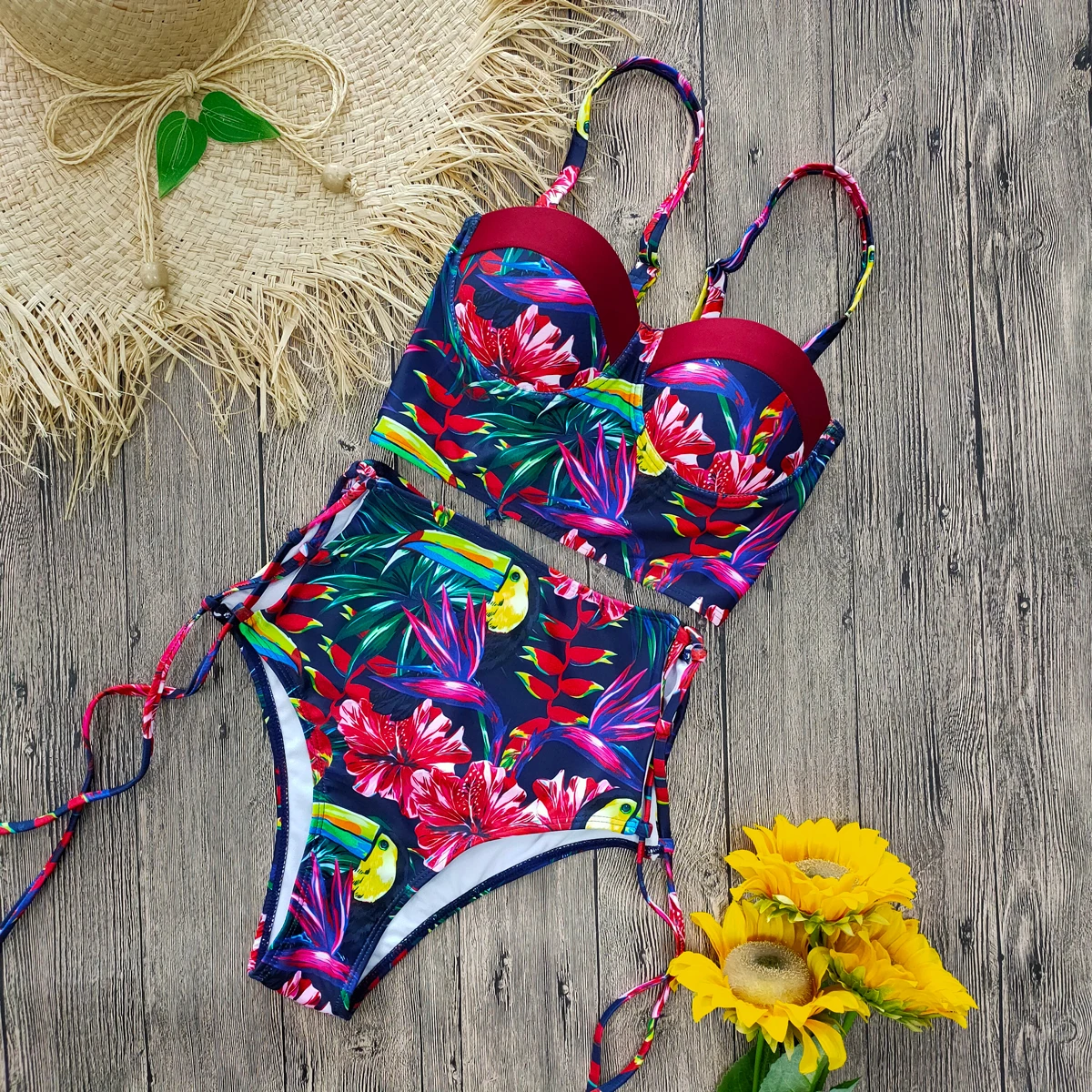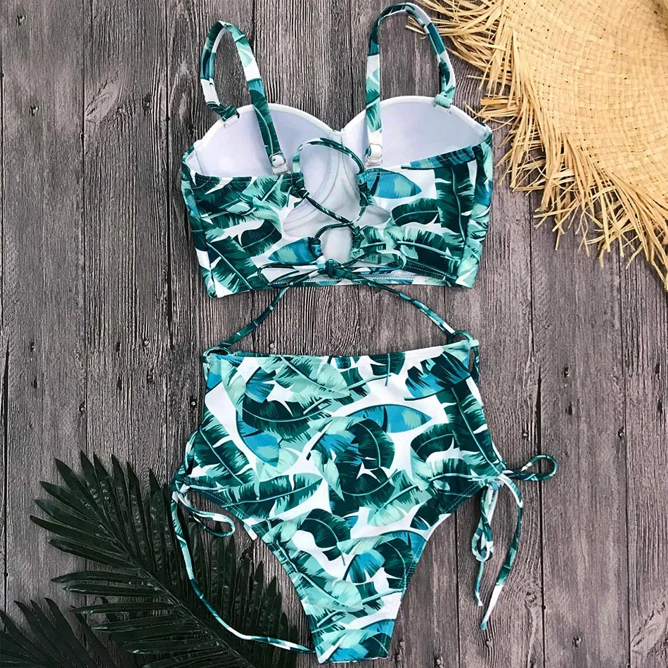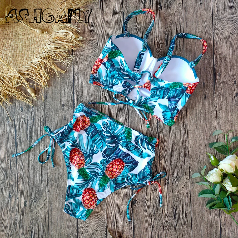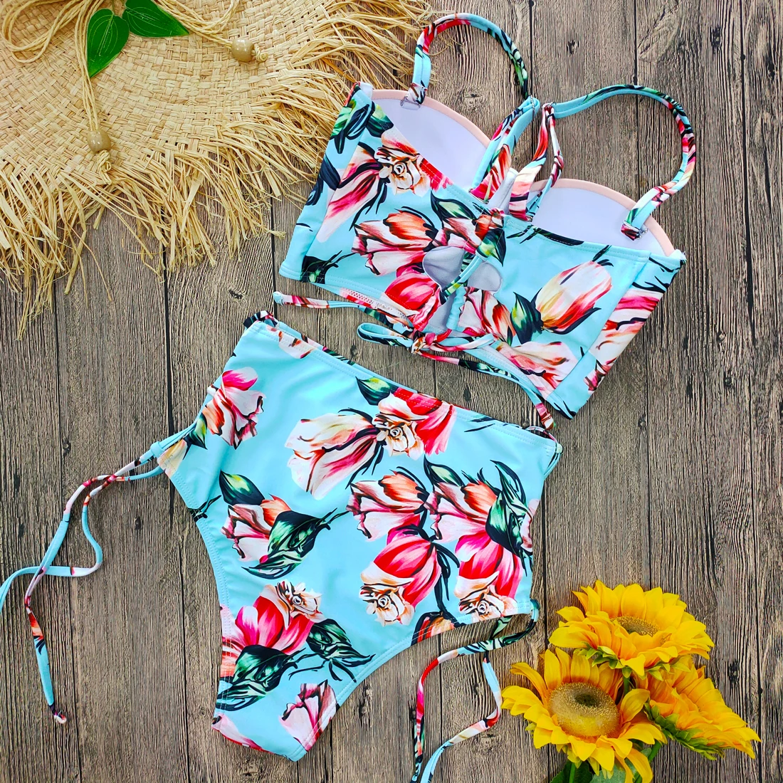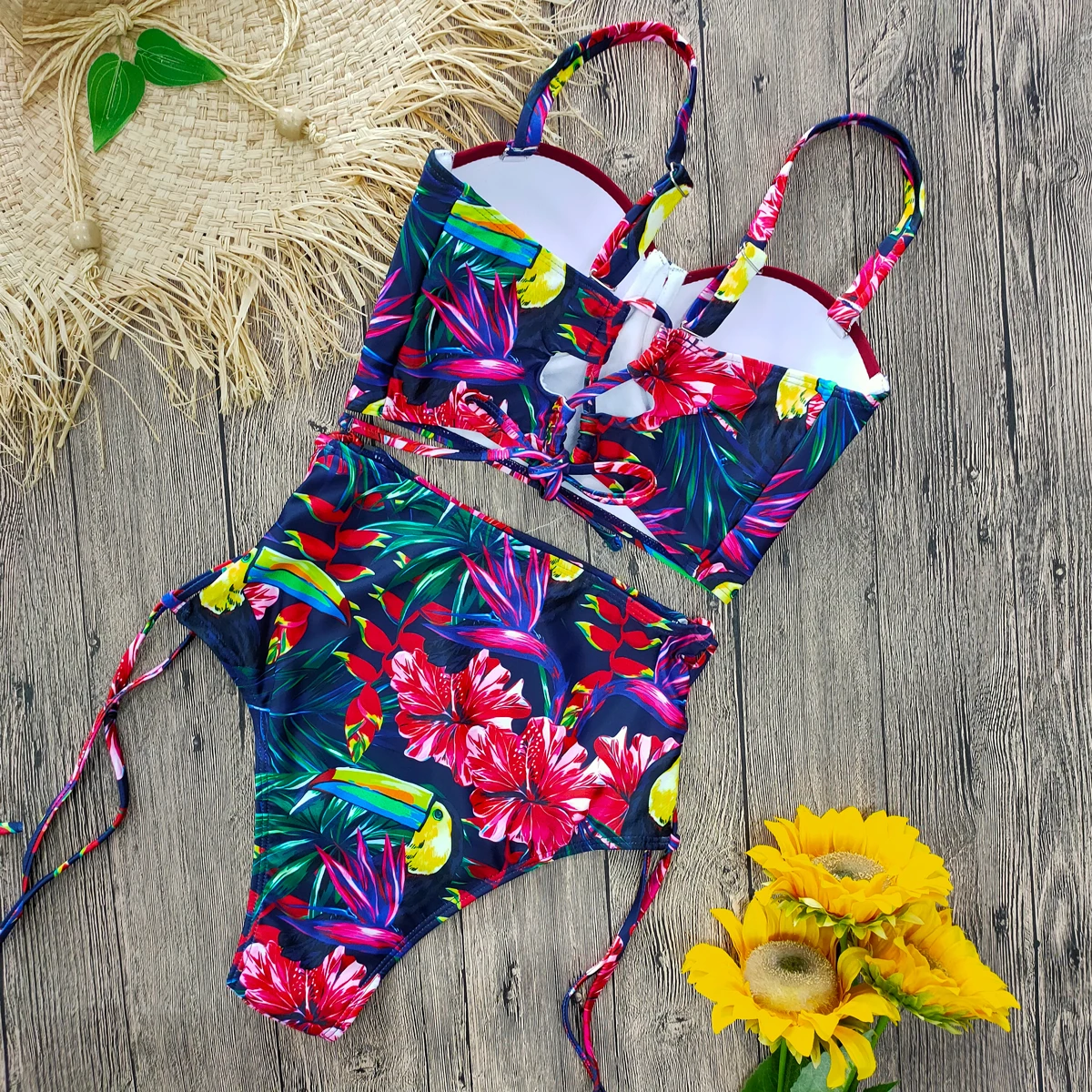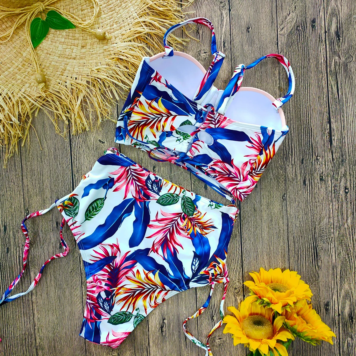 2021 новый купальник с высокой талией, женский купальник, бикини с принтом, бандажный комплект бикини, Мягкий купальный костюм, бикини