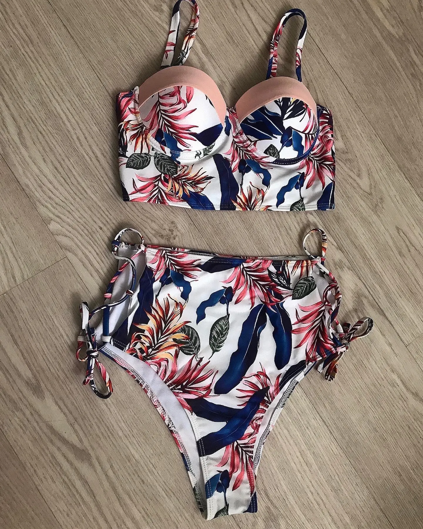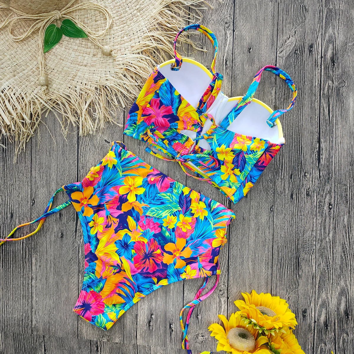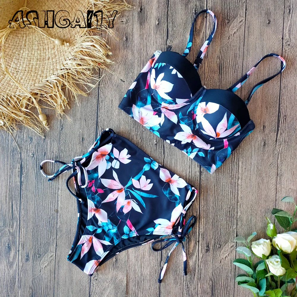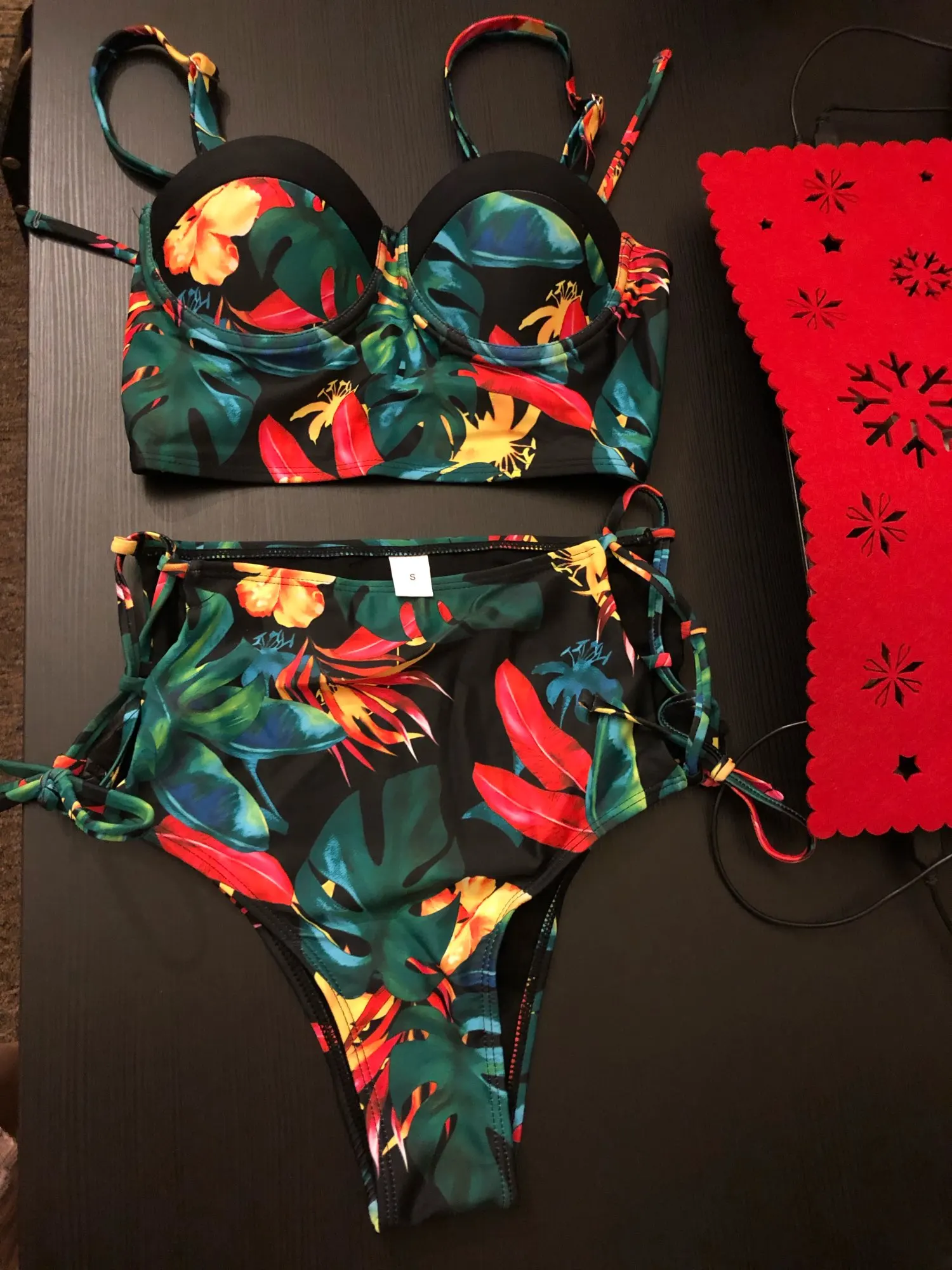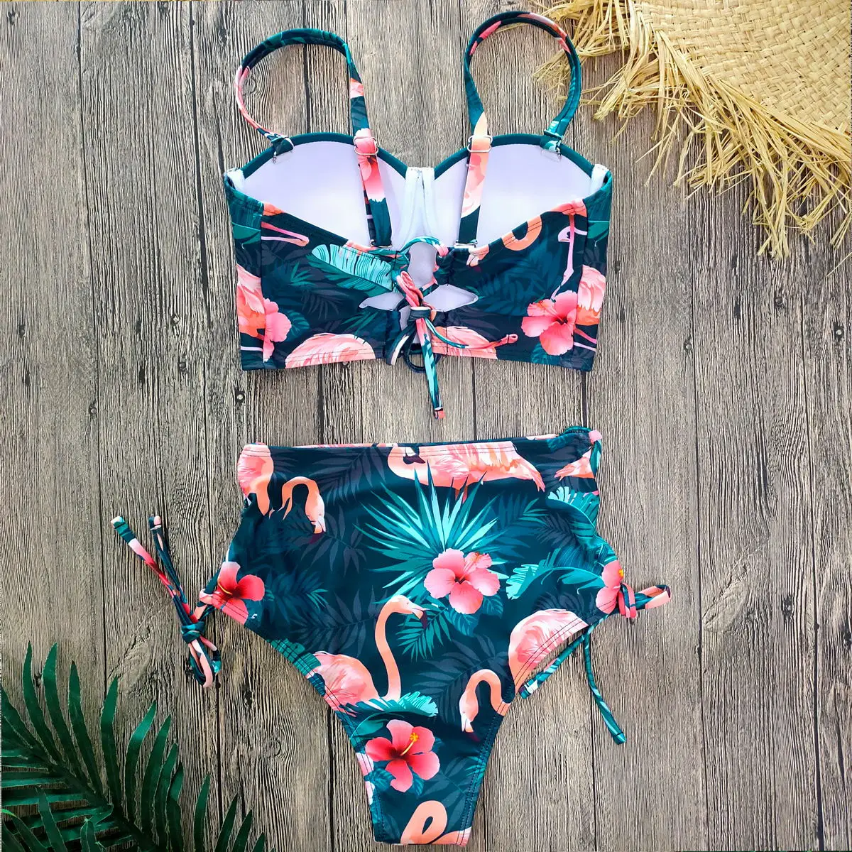 2021 новый купальник с высокой талией, женский купальник, бикини с принтом, бандажный комплект бикини, Мягкий купальный костюм, бикини