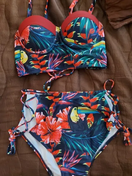 Купальник красивый , регулируется объём и трусиков и верха . Но ! У кого грудь больше второго размера , проходим мимо ... у меня грудь четвёрка , а низ 44 размера . Мне совершенно не подошёл (заказала специально хl , что бы грудь влезла , но увы). Очень жалко. Купальник для тех у кого нет сисек , но есть жопа ))))