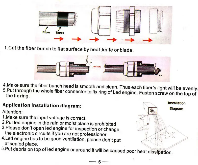 Параметры*** 50 Вт DMX светильник световой двигатель ***Рабочее напряжение: 110 ~ 240 В переменного тока, ГцМощность: 50 ВтЦвет светильник: RGBWПульт дистанционного управления: 28key RF Remote ControlРежим изменения светильник: один цвет (смешанный белый, чистый белый, красный, зеленый, синий, желтый, голубой, розовый + цвет «сделай сам»), изменение света RGB, выцветание, четыре уровня скорости мерцания, Управление яркостью, скорость режима,Материал корпуса: АБС-пластикДиаметр соединителя: 30 ммСрок службы: более 50000 часовРазмер: д15*ш15*В8 см (5,9*5,9 * дюйма)Масса: 2 кгГарантия: 2 года*** Оптоволоконный кабель ***Диаметр каждого волокна: 0,75 мм/1,0 мм/1,5 мм длина оптоволоконного кабеля из ПММА: 5 м (L) на каждый кабельКоличество оптоволоконных кабелей в комплекте:835 шт(600 шт* 0,75 мм,200 шт* 1,0 мм,35 шт.* 1,5 мм)Рабочая температура оптоволоконного кабеля:-45 градусов Цельсия-75 градусов ЦельсияПосылка входит-1x50 Вт DMX512 светильник световой двигатель с пультом дистанционного управления с 28 кнопками-1x835 шт (600 шт * 0,75 мм + 200 шт * 1,0 мм + 35 шт * 1,5 мм)