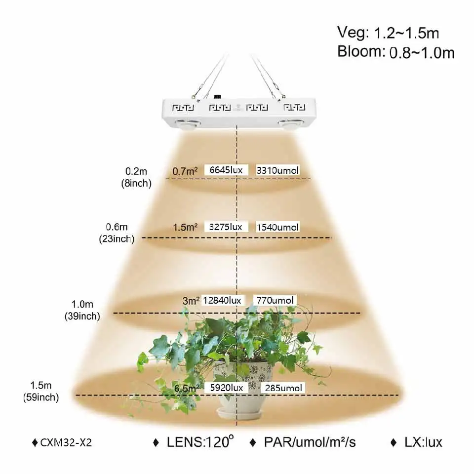 6. Высоко Подвесная лампа ослабит энергию и повлияет на цикл роста растений, поэтому лампа не должна висеть слишком высоко. В то же время не вешайте светильник слишком близко к растениям, иначе он повредит растения. О 0,8 ~ 1,2 метра высотой является хорошим выбором.