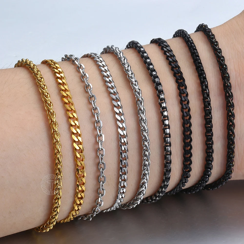 Браслет Davieslee для мужчин и женщин, плетеная круглая цепочка из нержавеющей стали, с кубинским плетением, с плетеными звеньями, DKBB13, 23 мм