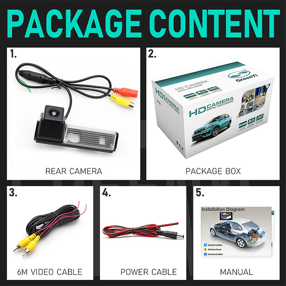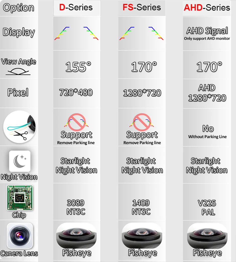 * Объектив рыбий глаз HD/AHD камера подходит для любой модели автомобиля TFT LCD монитор парковки и автомобильный dvd-плеер на основе Android. Супер широкоугольный объектив (170 градусов).* С использованием HD AHD цифрового датчика изображения, предназначенного для разработки автомобильного дизайна заднего вида, с использованием технологии цифровой заливки и программного обеспечения, четкое изображение.* От-35 до + 65 температурный диапазон применения, полностью соответствует применению автомобильной среды. Фабрика после испытания на погружение в воду высокого давления и 12 часов на испытание на электрическое старение, многослойная водонепроницаемая конструкция.* 6 м видео кабель подключения монитора, кабель питания подключения автомобиля задний светильник питания, Реверсивный, реверсивная система мониторинга автоматически начинает работать, вы можете ясно видеть автомобиль после ситуации* Советы: AHD камера поддерживает только AHD монитор и новое автомобильное радио Android. Перед покупкой, пожалуйста, проверьте Android устройство поддержки AHD видео сигнала!