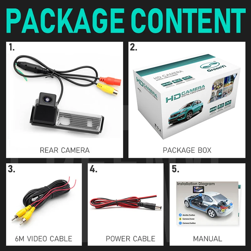 1. Датчик изображения: чип серии D 3089. Чип FS-HD серии 1409. Чип AHD-sreies V225.2. ТВ система: NTSC (Примечание: AHD камера является PAL сигналом)3. Эффективные пиксели: 720*480P или 1280*720P4. Низкий светильник ночного видения, видимое расстояние 6 м для ночи.5. Объектив камеры: 4 стеклянных объектива 170 градусов широкий угол.6. Мощность: 12 В постоянного тока7. Длина видеокабеля: 6 м8. Питание кабель Длина: 1,5 м9. Подходит для dvd-плеера Android и любого монитора парковки автомобиля TFT.10. Советы: AHD камера поддерживает только AHD монитор и новое автомобильное радио Android. Перед покупкой, пожалуйста, проверьте Android устройство поддержки AHD видео сигнала!Посылка включает в себя:1. Камера заднего вида2. 6 м RCA видео кабель3. Кабель питания4. Руководство пользователя