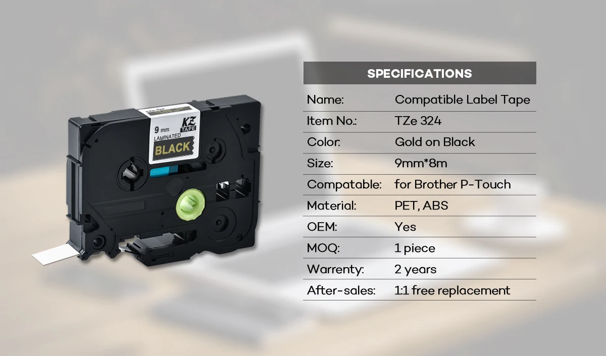 Кассета Tze324, 9 мм, с золотым на черном цвете, ламинированная этикетка, лента tze этикетка картриджа, tze Tze-324, tze324, для P-touch, PT
