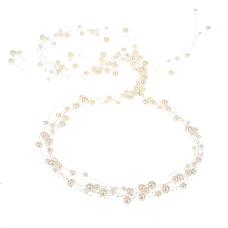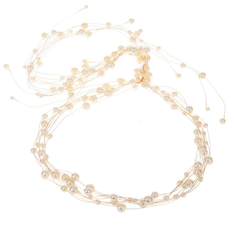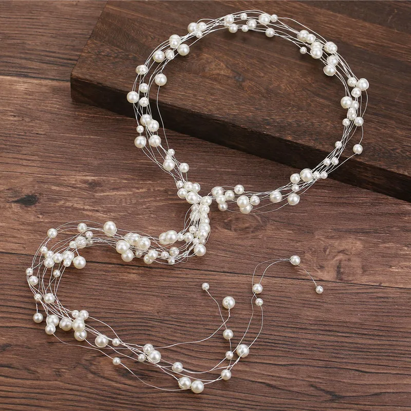 Венок резинка для волос ручной работы, многослойная длинная повязка на голову с жемчугом, свадебные аксессуары для волос