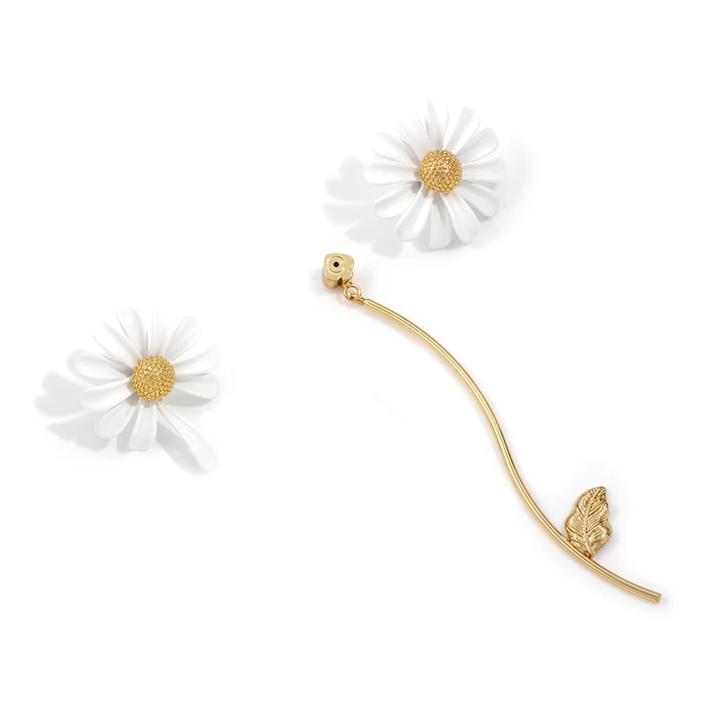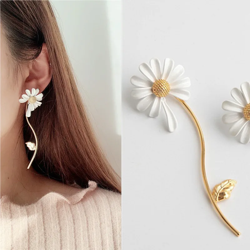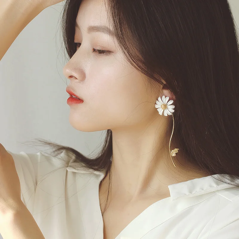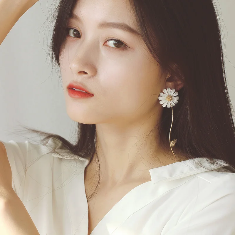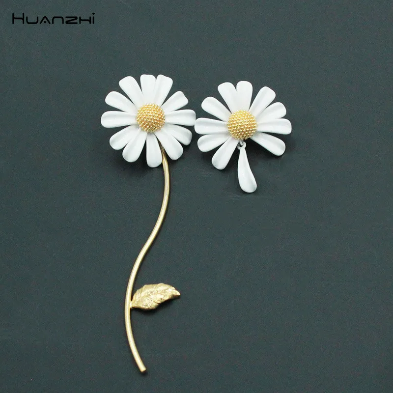 HUANZHI 2020 новые весенние каплевидные глянцевые асимметричные серьги с кисточками и цветком маргаритки, милые металлические серьги для женщин, ювелирные изделия