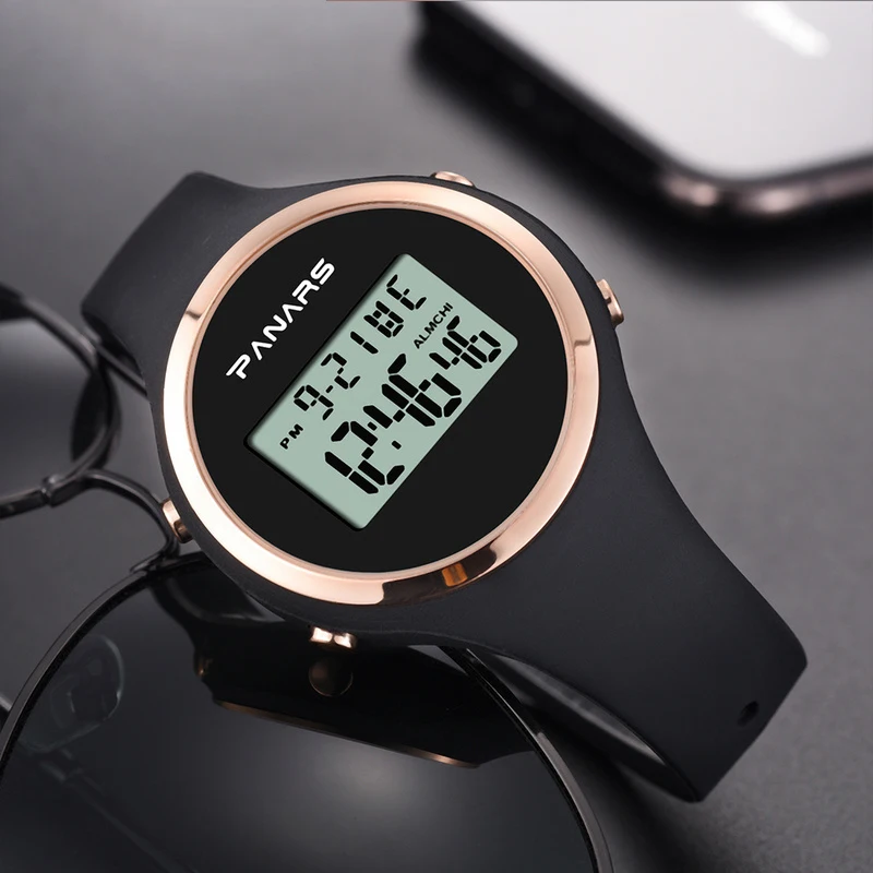 Часы PANARS женские цифровые, водонепроницаемые электронные спортивные, для фитнеса, с резиновым ремешком, розовые, с LED подсветильник кой