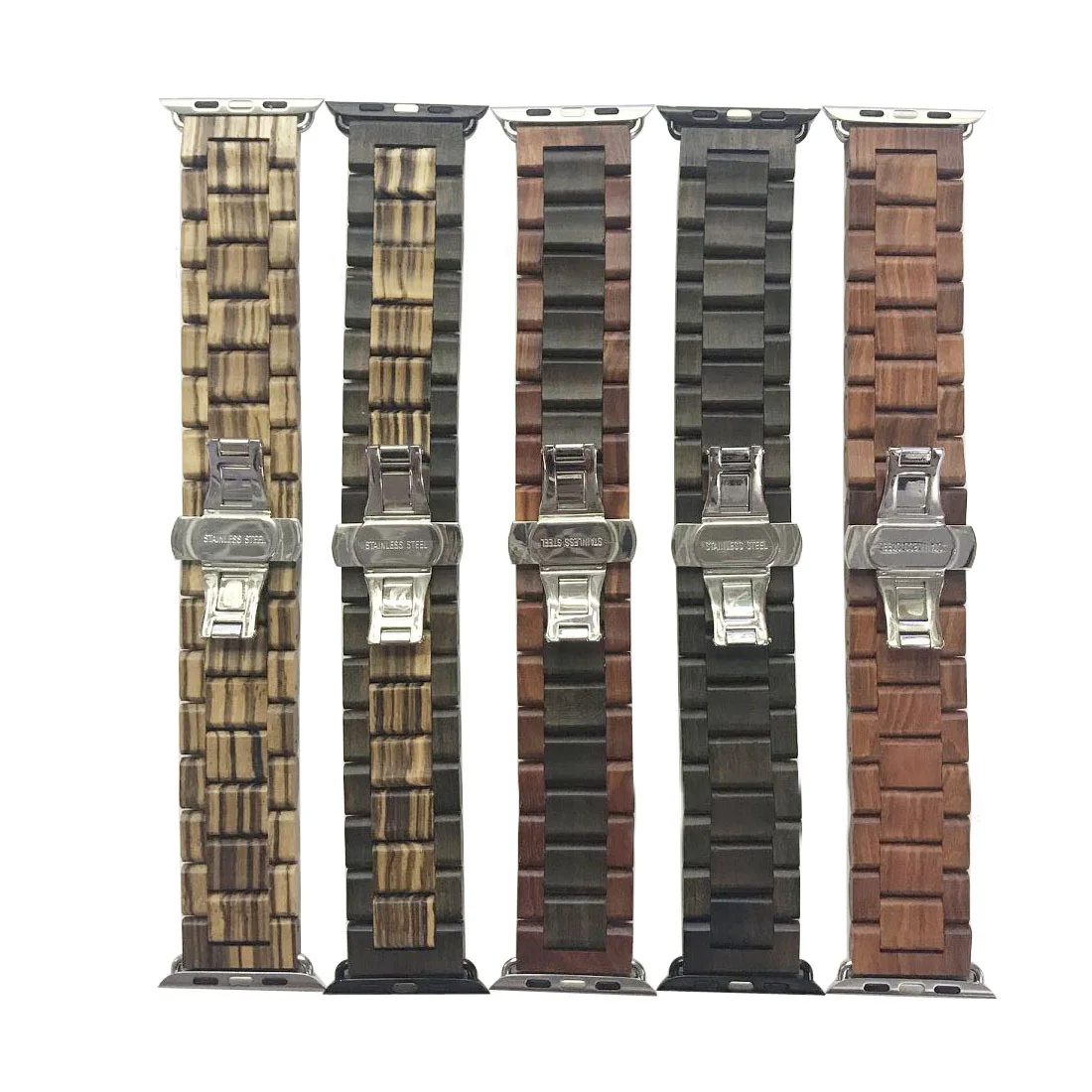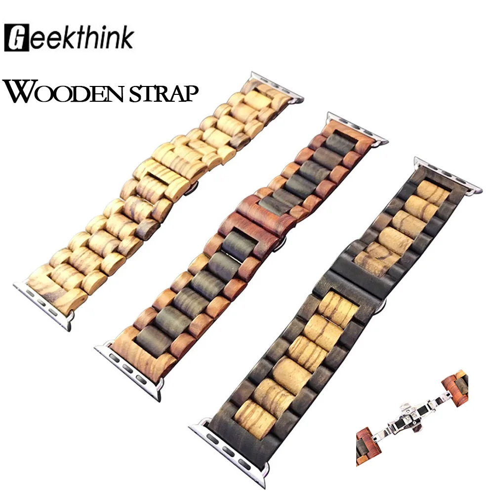 Ремешок деревянный для Apple watch band 5 4 44 мм 40 мм iWatch 3 band 42 мм 38 мм, женский браслет из нержавеющей стали