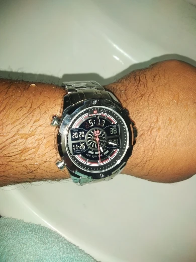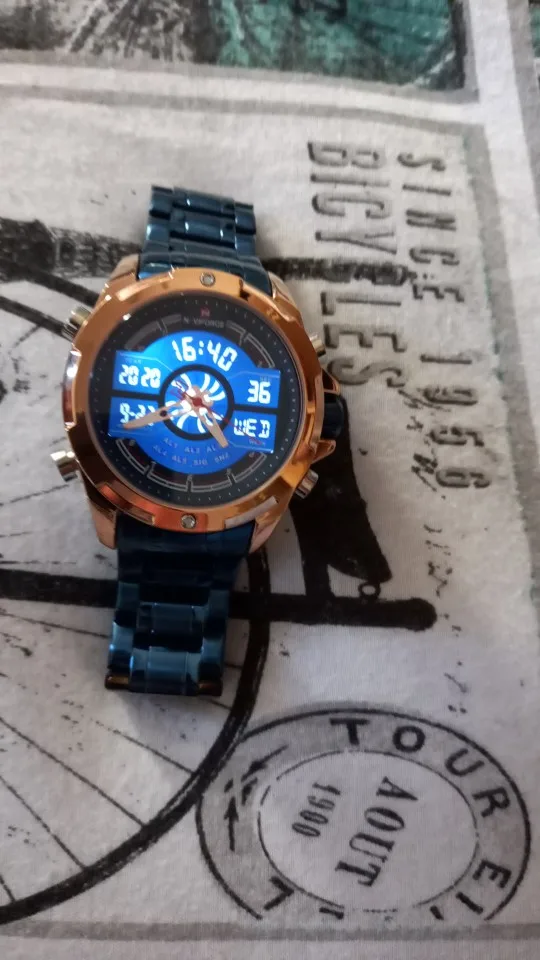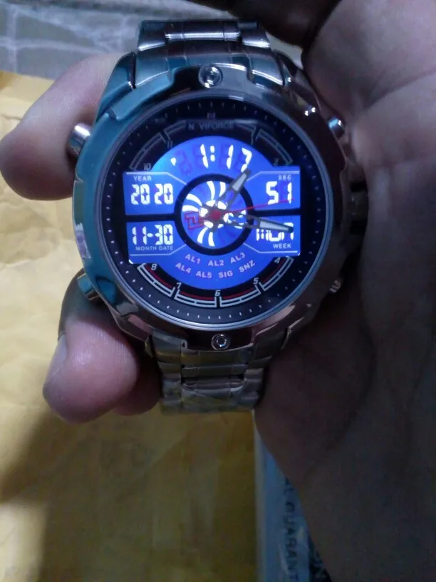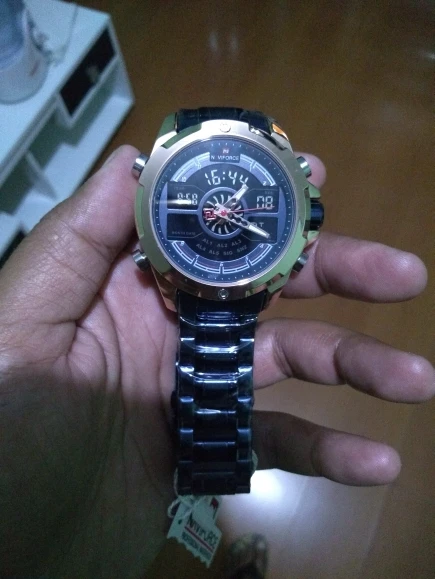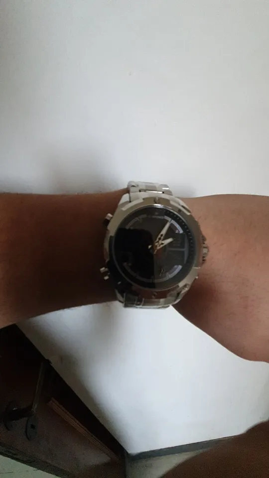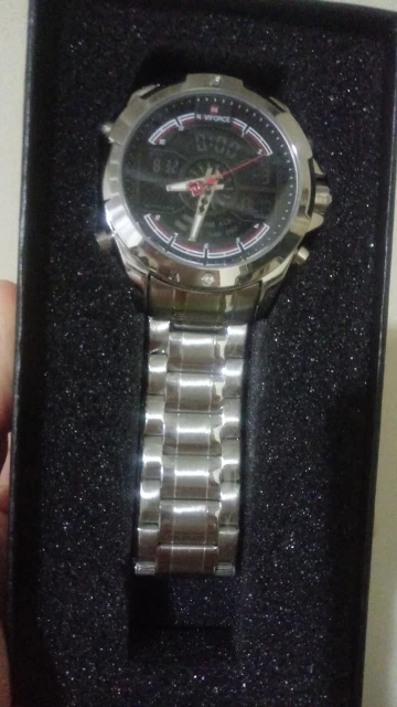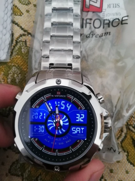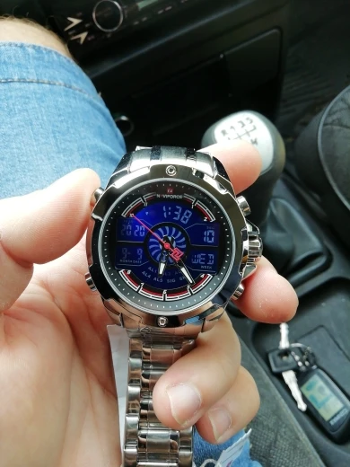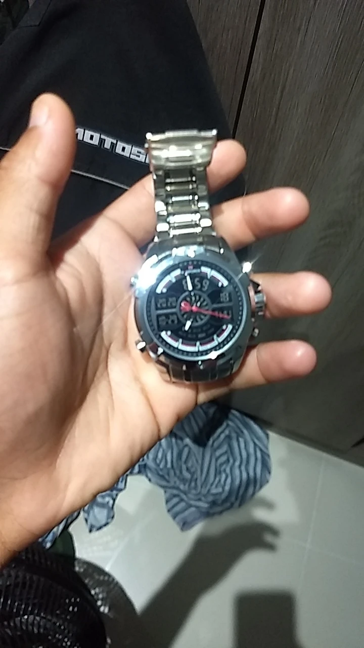 Это очень хорошие презентационные часы из нержавеющей стали, функциональный хронограф, аналоговый и цифровой, с ночным освещением, водонепроницаемость, моя личная концепция, отличное качество.