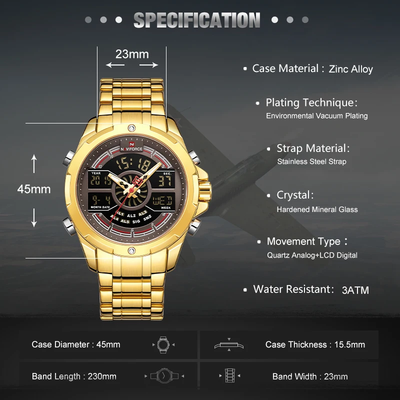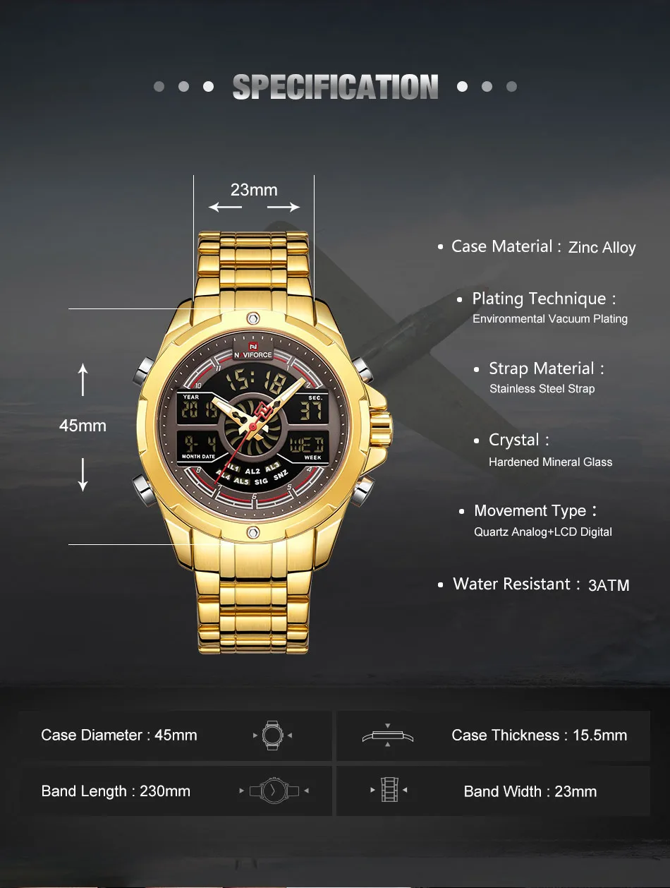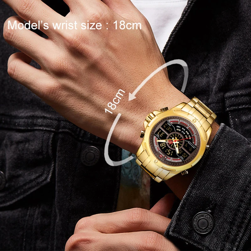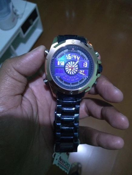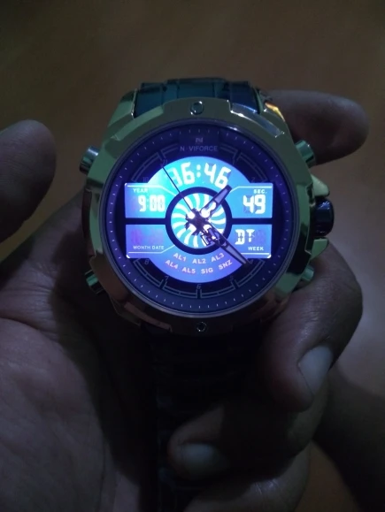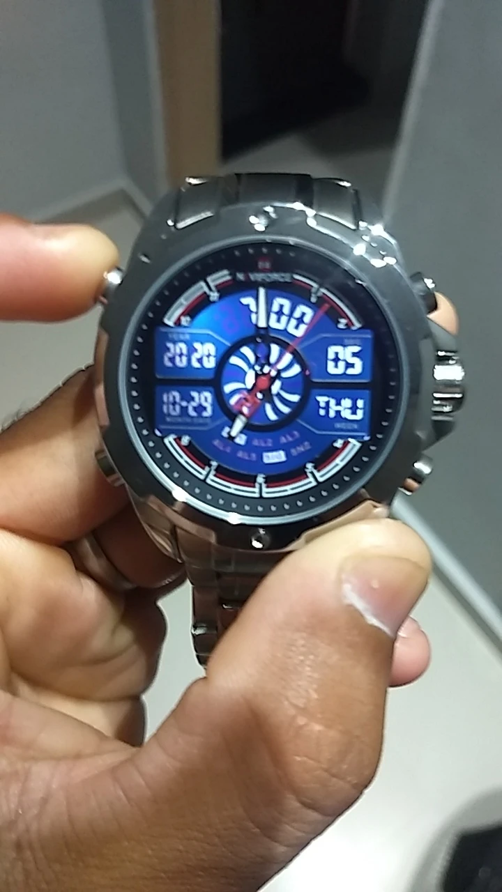 Это очень хорошие презентационные часы из нержавеющей стали, функциональный хронограф, аналоговый и цифровой, с ночным освещением, водонепроницаемость, моя личная концепция, отличное качество.