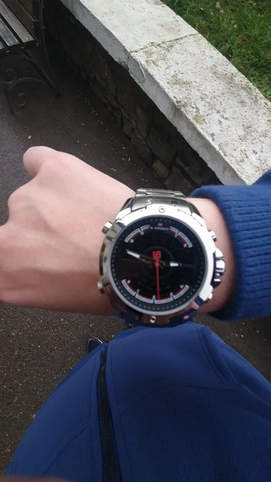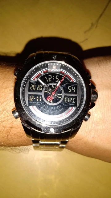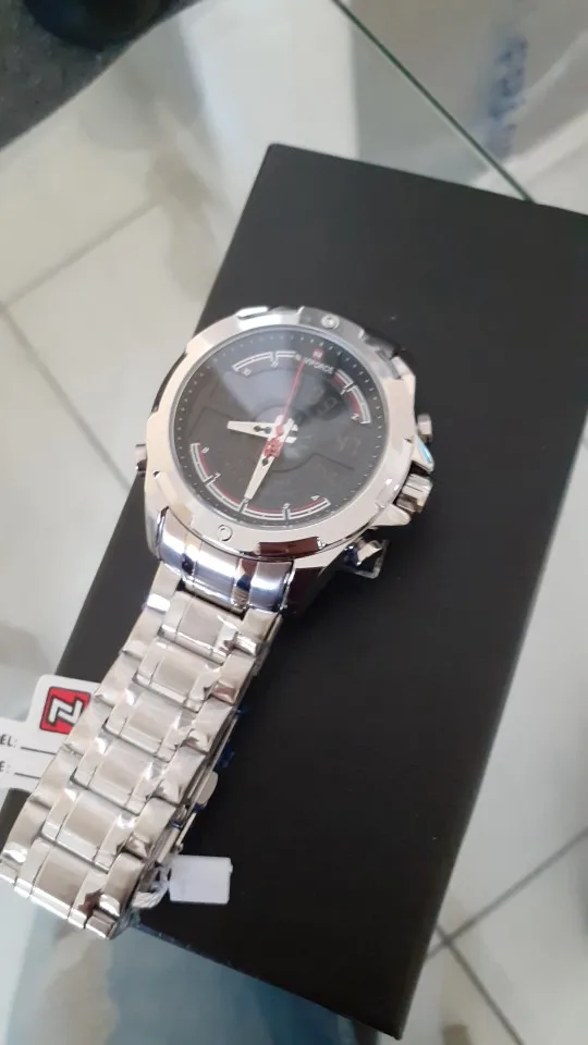 Красивые часы хорошо обработаны весь хром с непревзойденным соотношением цены и качества, но будьте осторожны! Эти часы доставляются без коробки, и они деликатны, чтобы сделать подарок кому-то без оригинальной коробки от производителя Naviforce, чтобы медитировать перед покупкой, вот точные размеры, снятые с микрометром. Профессиональный. Диаметр короны = 45 мм Диаметр стекла = 36,56 мм Толщина = 15,90 мм Ширина ремешка = 22,18 мм Толщина ремешка = 4,36 мм