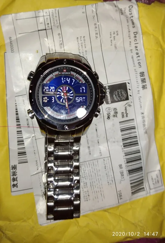 Часы пришли быстро. Упакованы хорошо. Заказывал часы в коробке. Коробка без деформации. Сами часы интересные. Но не удобно, после настройки времени на электронном циферблате нужно ещё крутить стрелки, сами они не ставятся.