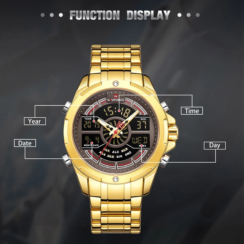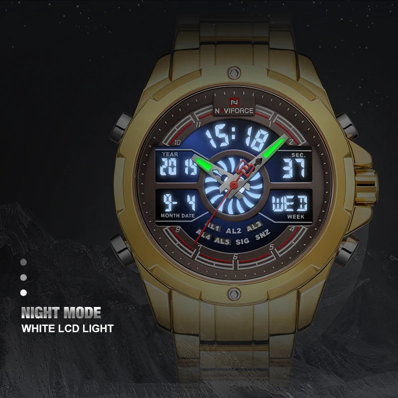 Часы NAVIFORCE мужские, кварцевые, водонепроницаемые, из нержавеющей стали
