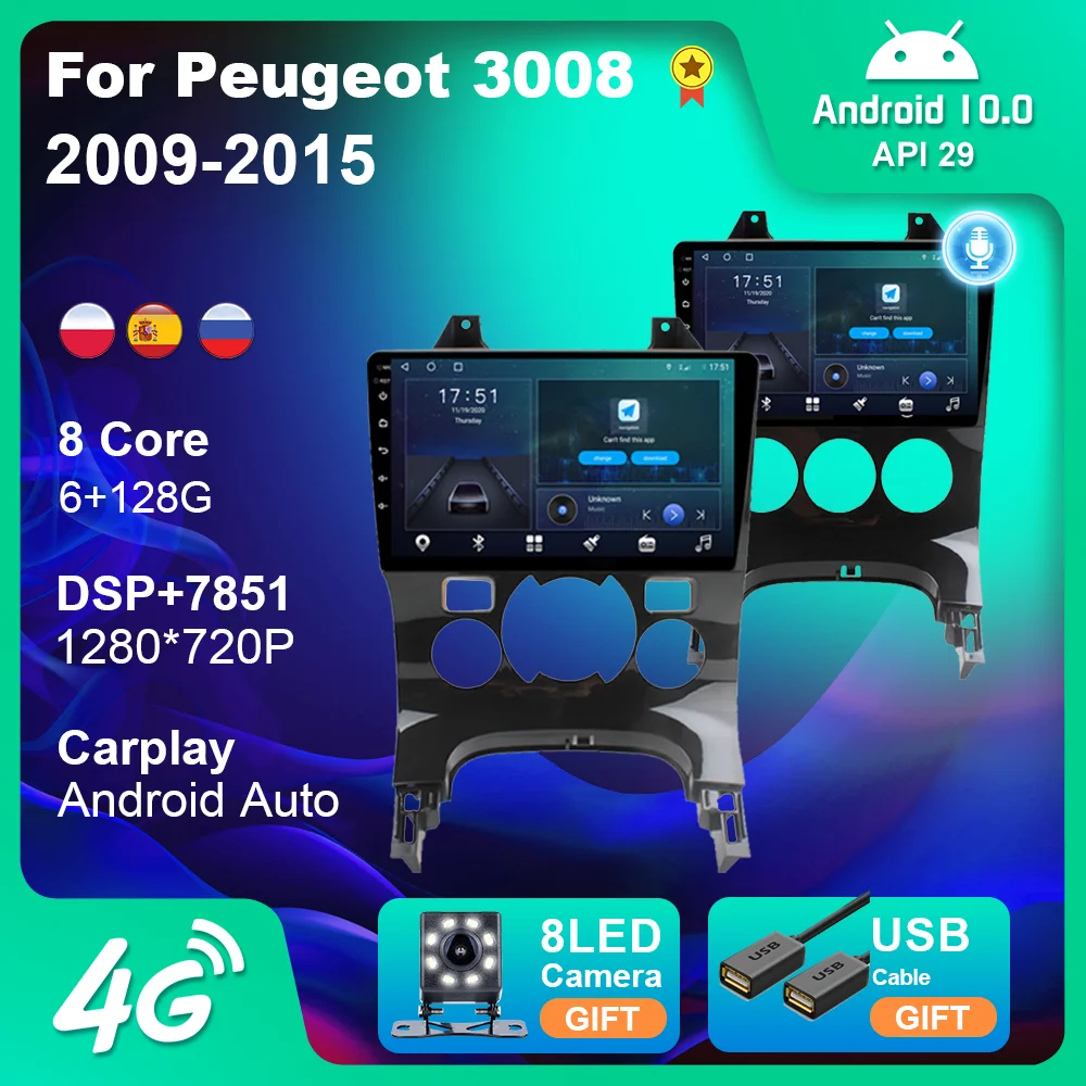 8G 128G автомобильное радио для Peugeot 3008 2009-2015 Android Авто...