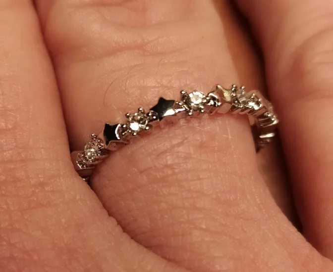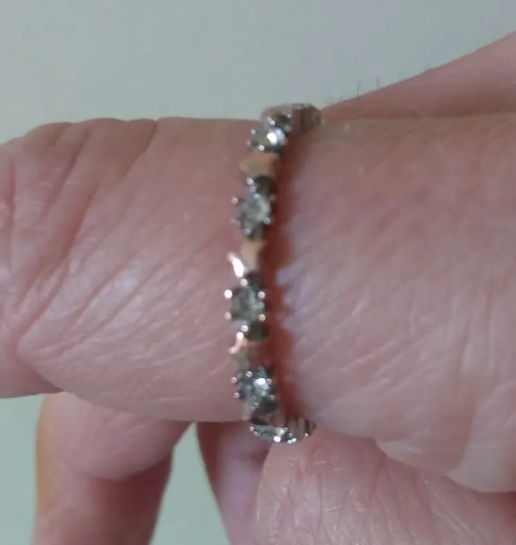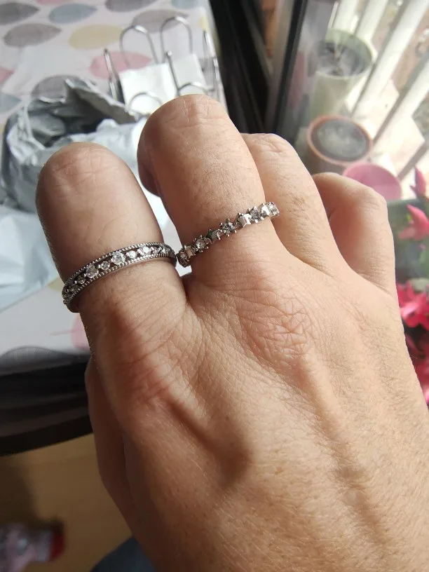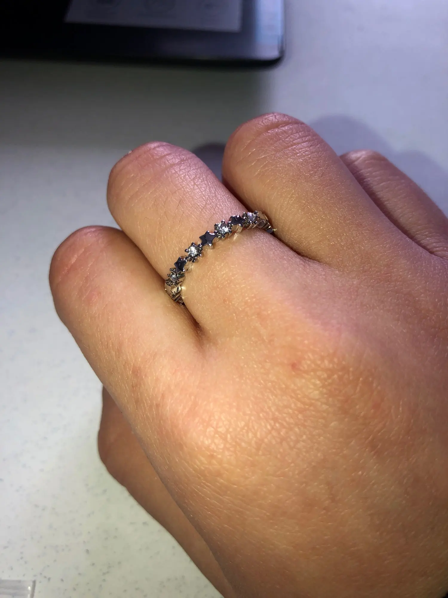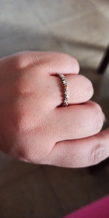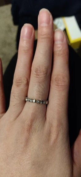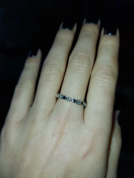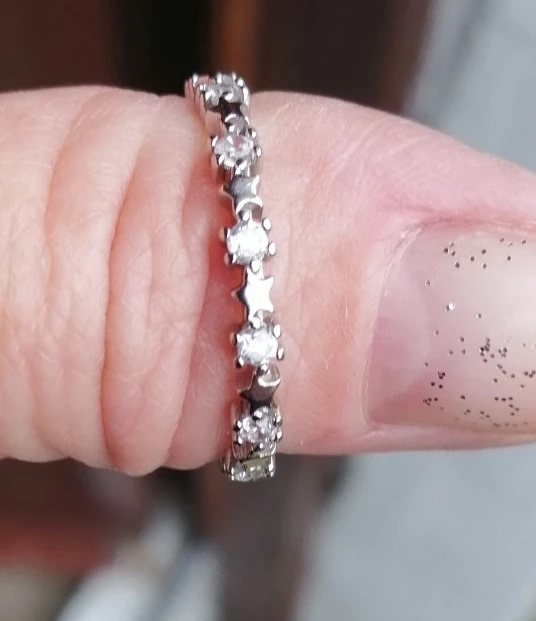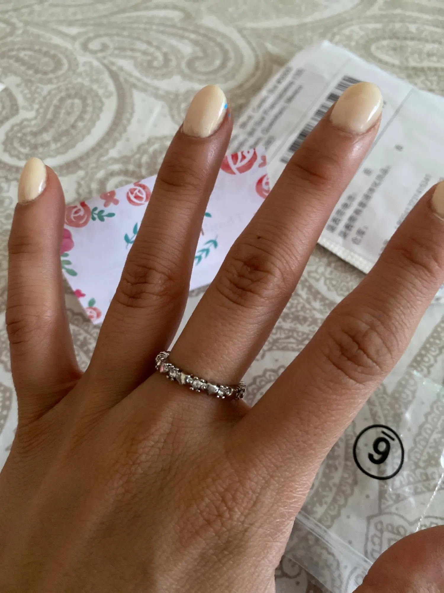 Хорошее кольцо, блестит красиво, но есть пара но: во-первых некоторые стразы сидят неплотно, а во-вторых кольцо носить постоянно неудобно, тк оно толстое и царапает. Но за эти деньги - норм. Пришло быстро. Брала 9 размер на большой палец, средний у меня 7.5)