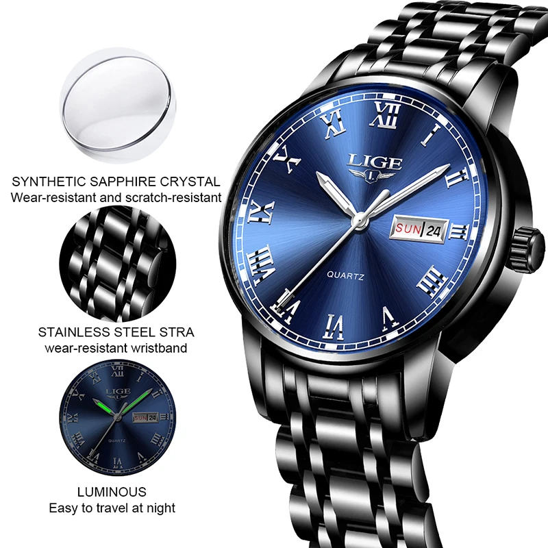Новинка 2020, мужские часы LIGE, Лидирующий бренд, Модная Неделя свиданий, мужские водонепроницаемые часы из нержавеющей стали, деловые мужские наручные часы, Relogio Masculino