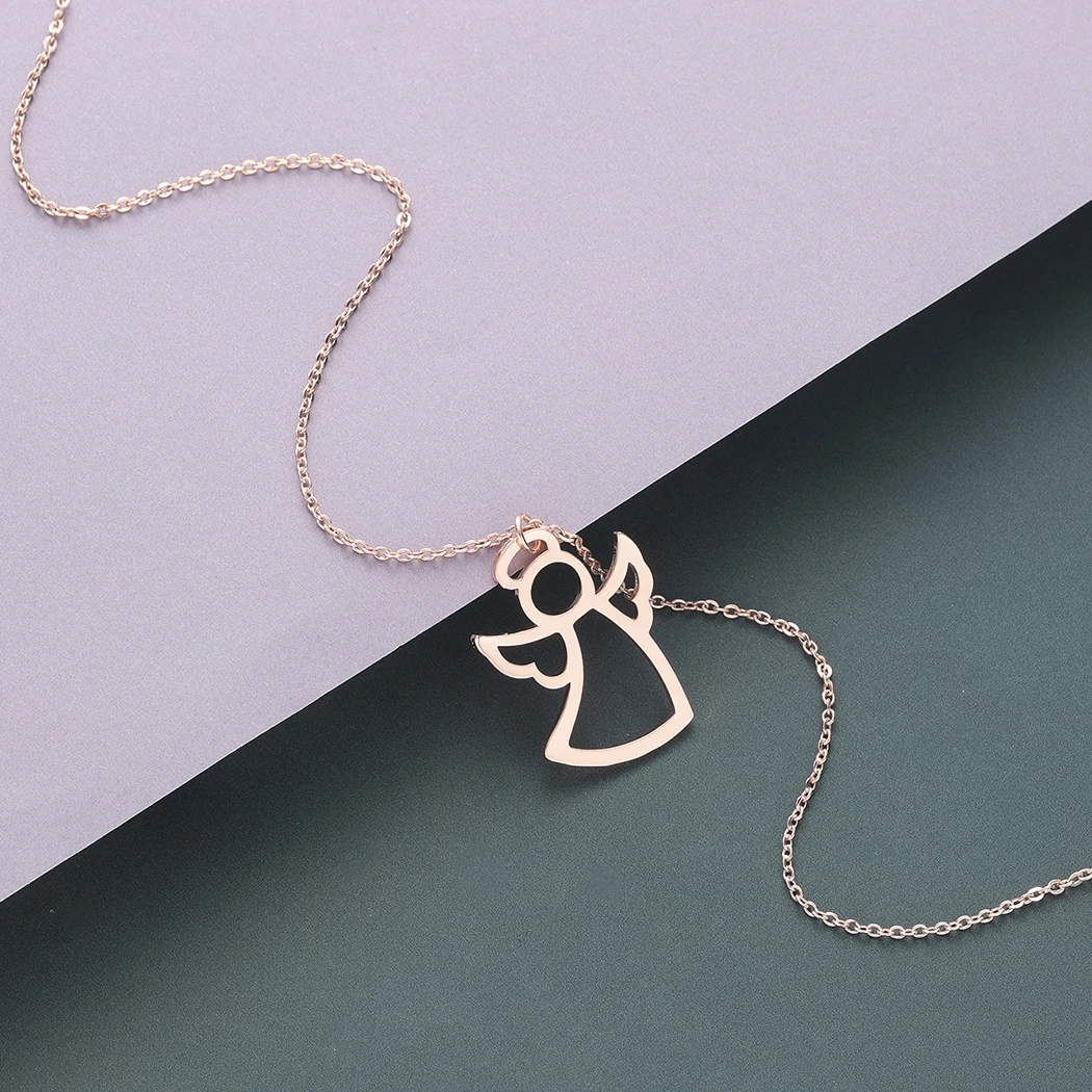 Ангел-хранитель с крыльями, кулон, ожерелье, Женские Ювелирные изделия из нержавеющей стали, платье для первого причастия, с подарком
