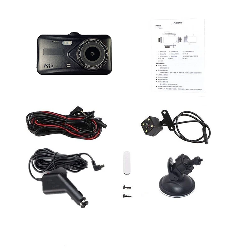 1080P Автомобильный видеорегистратор, камера заднего вида, 4 дюйма, циклическая запись ночного видения, G-сенсор, 170 °, широкоугольный сенсорный экран, двойной объектив, видеорегистратор