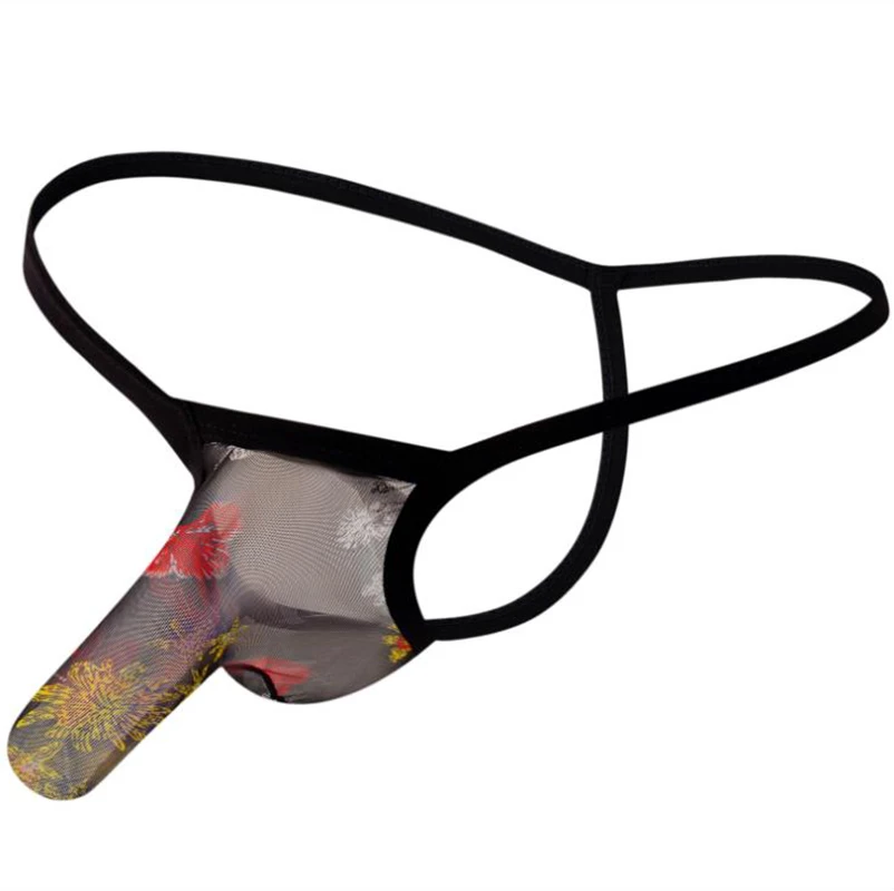 Мужские сексуальные трусы с низкой посадкой, прозрачные цветочные о...