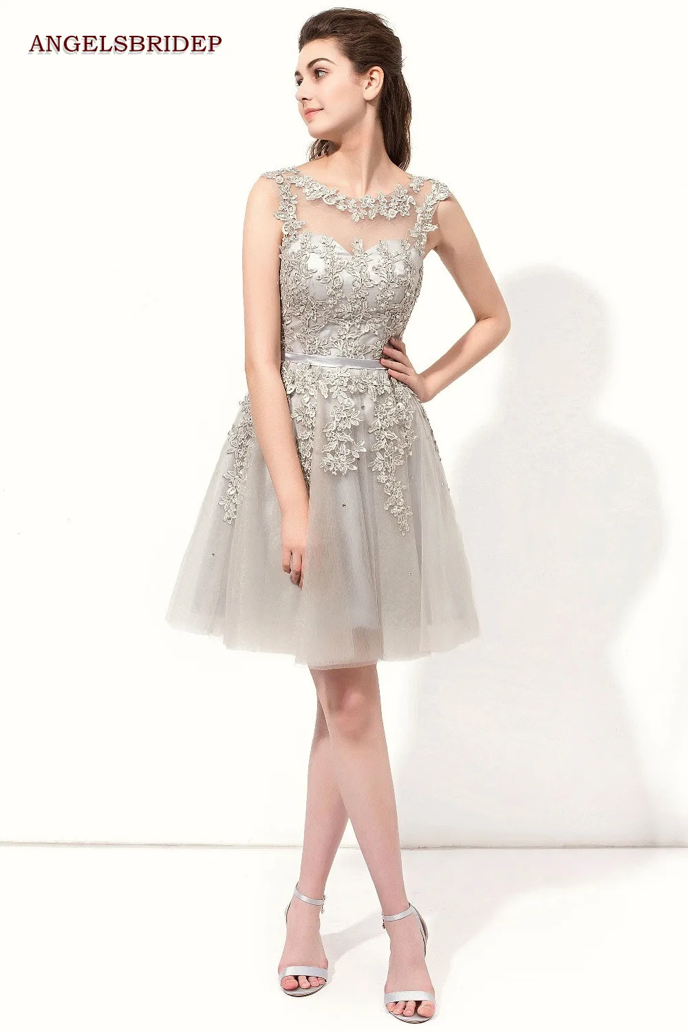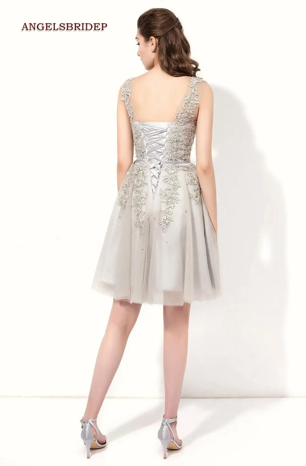 ANGELSBRIDEP короткое платье для выпускного вечера с глубоким вырезом аппликация платья для выпускного вечера платья быстрая доставка