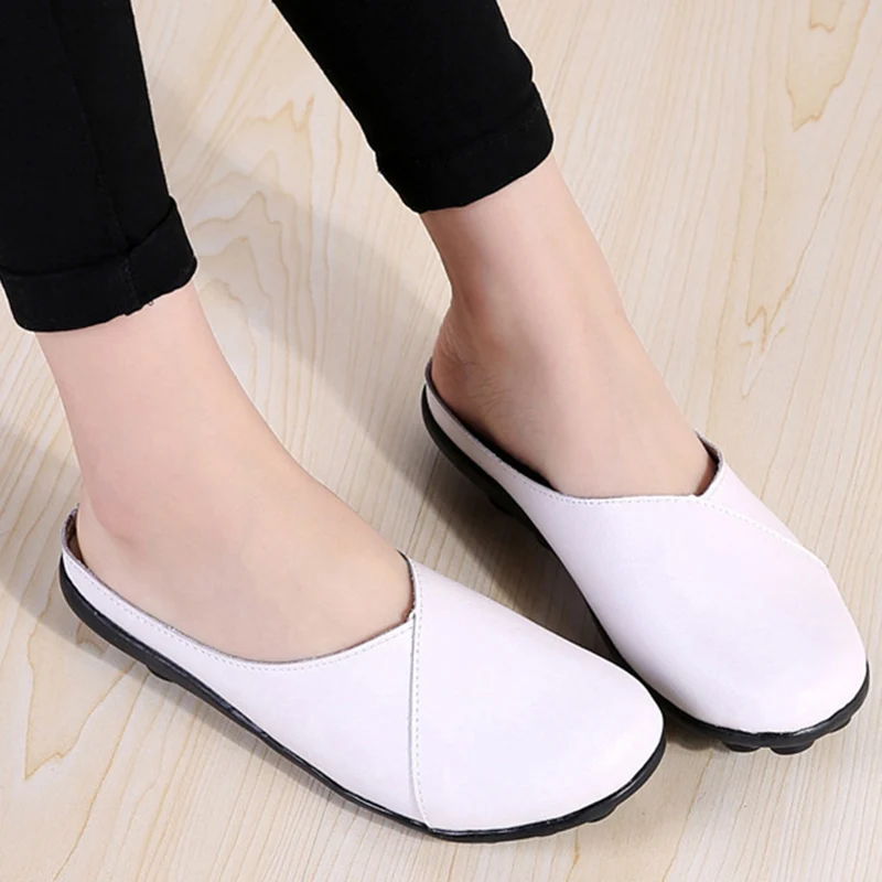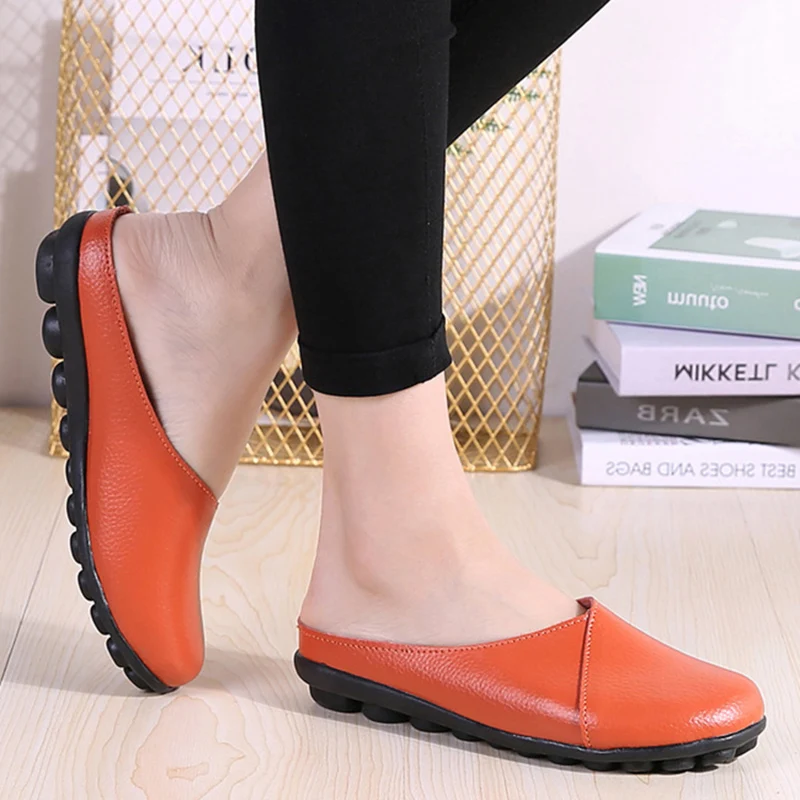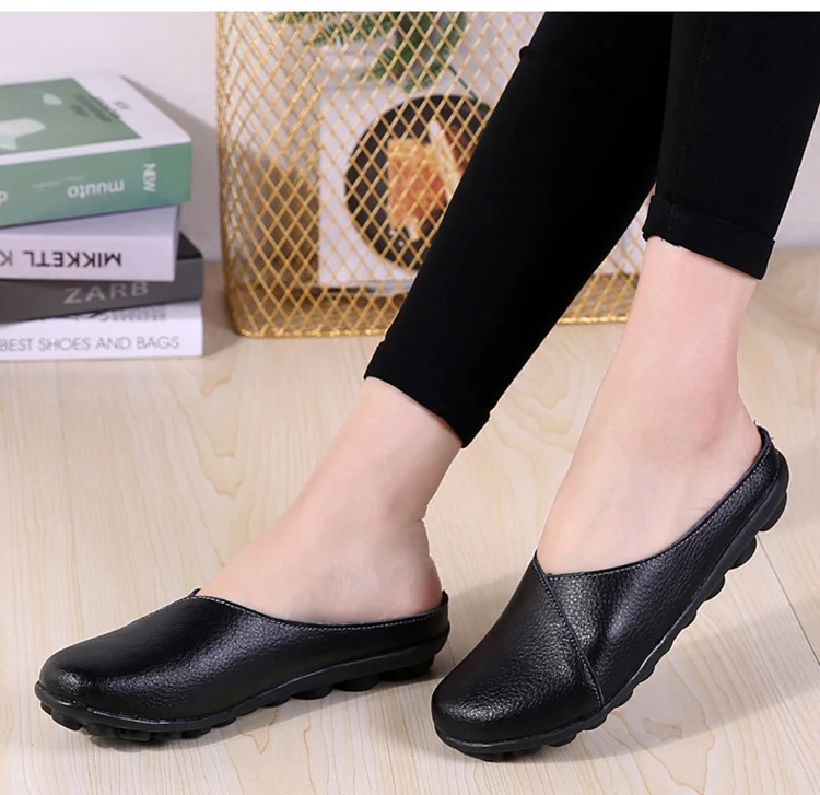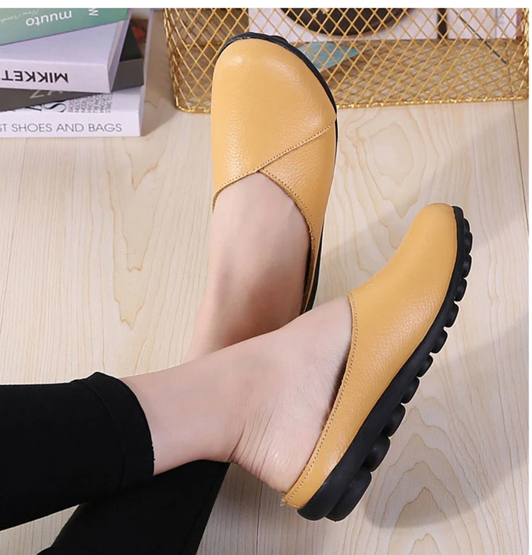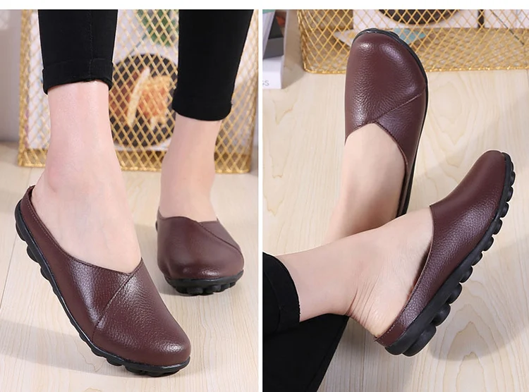 Женская обувь из натуральной кожи, Повседневная прогулочная обувь на плоской подошве, без застежки, размера плюс