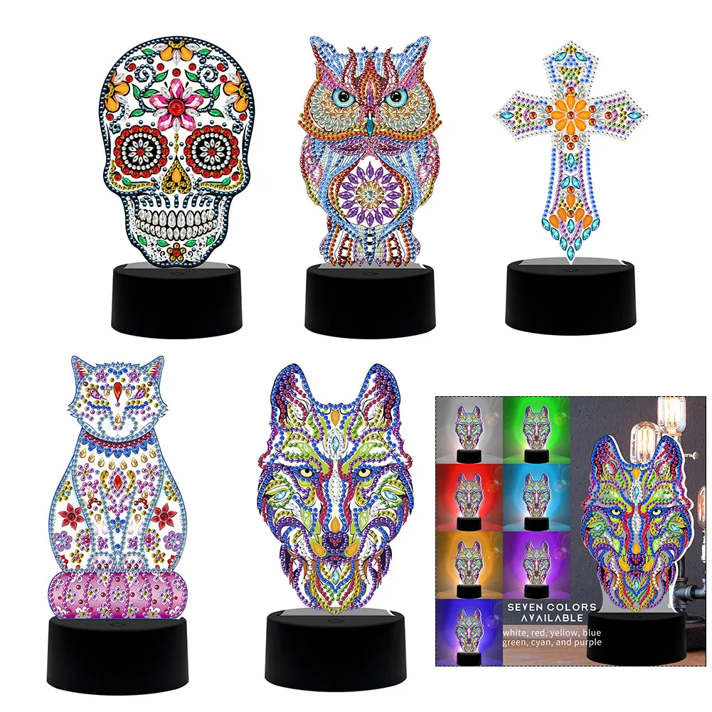 Сделай Сам, специальная алмазная живопись, светодиодный ночник, светильник, вышивка крестиком, мозаика, набор, 7 цветов, украшение для дома, лампа, подарок