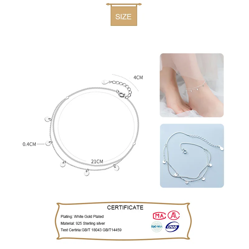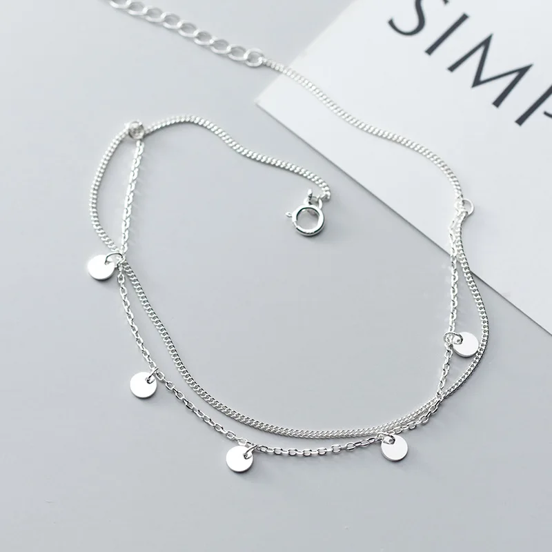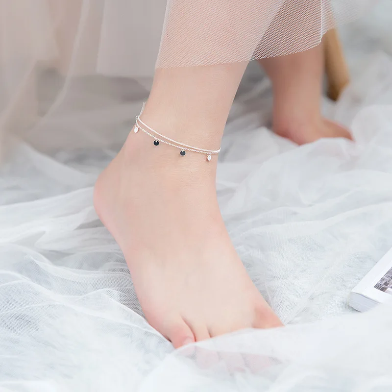 Женские двухслойные ножные браслеты Trustdavis, милые круглые шаровары из стерлингового серебра 925 пробы, подарок на день Святого Валентина, ювелирные изделия DA671
