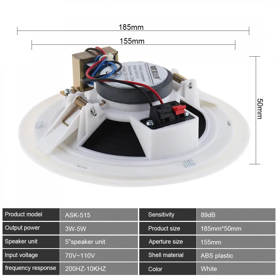 2 шт.лот, 5 дюймов, 5 Вт, модный микрофон, вход USB, mp3-плеер, потолочный динамик, фоновая музыкальная Колонка для общественного вещания для дома