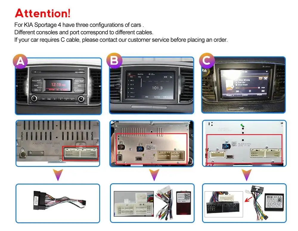 Пожалуйста, выберите правильную модель в соответствии с вашим оригинальным изображением автомобильного радио и изображением кабеля питания!