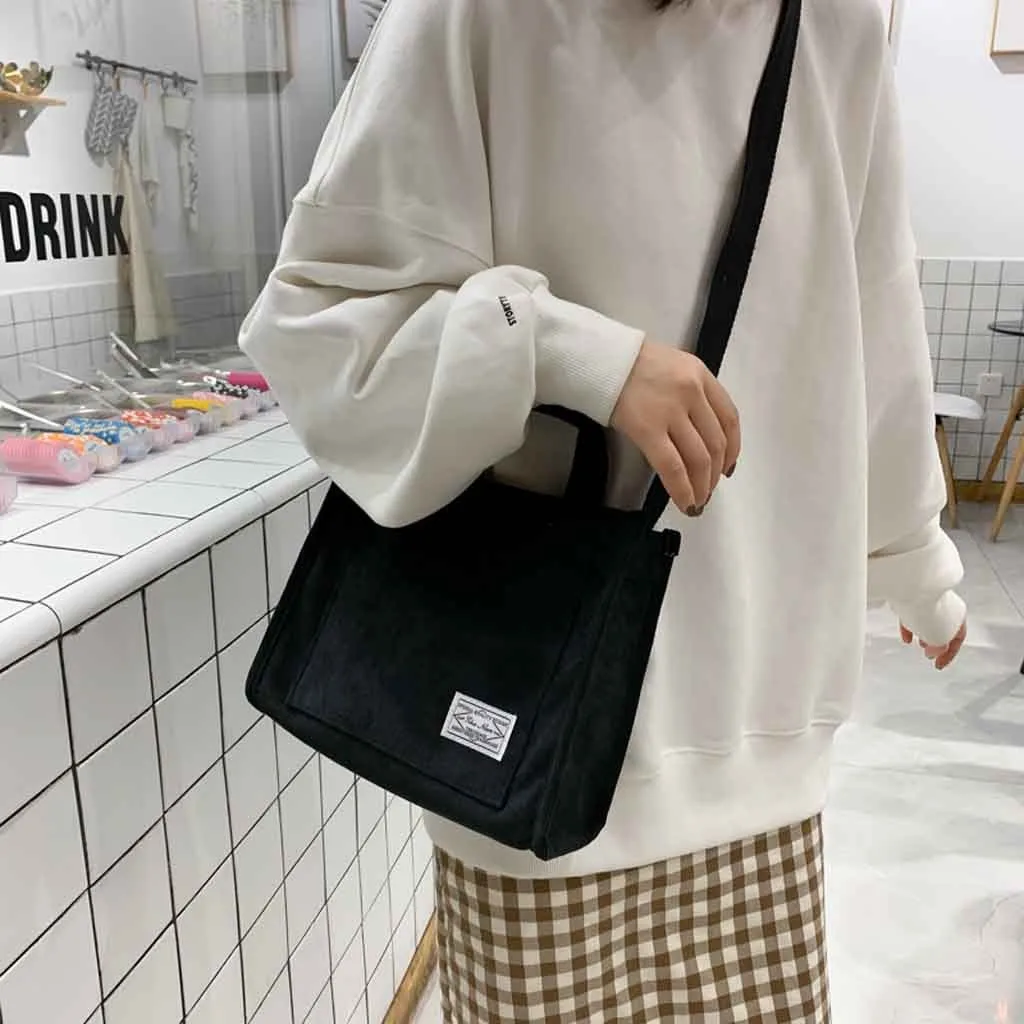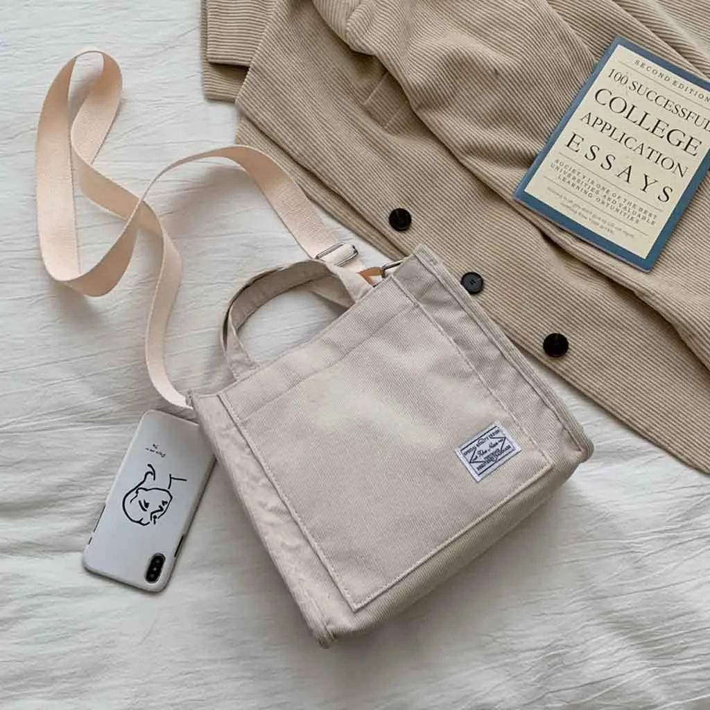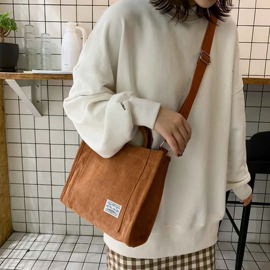 Женская простая Холщовая Сумка, Вельветовая Сумочка, модная повседневная сумка через плечо