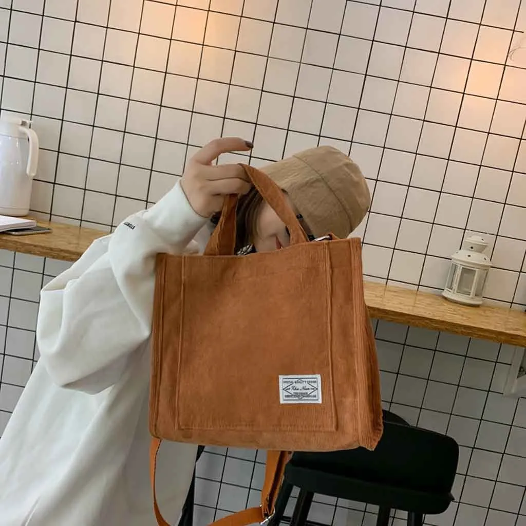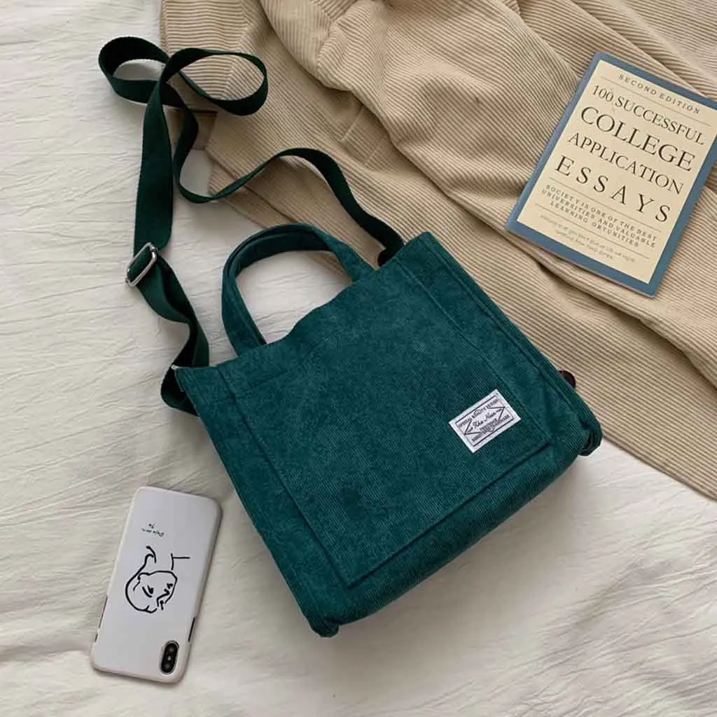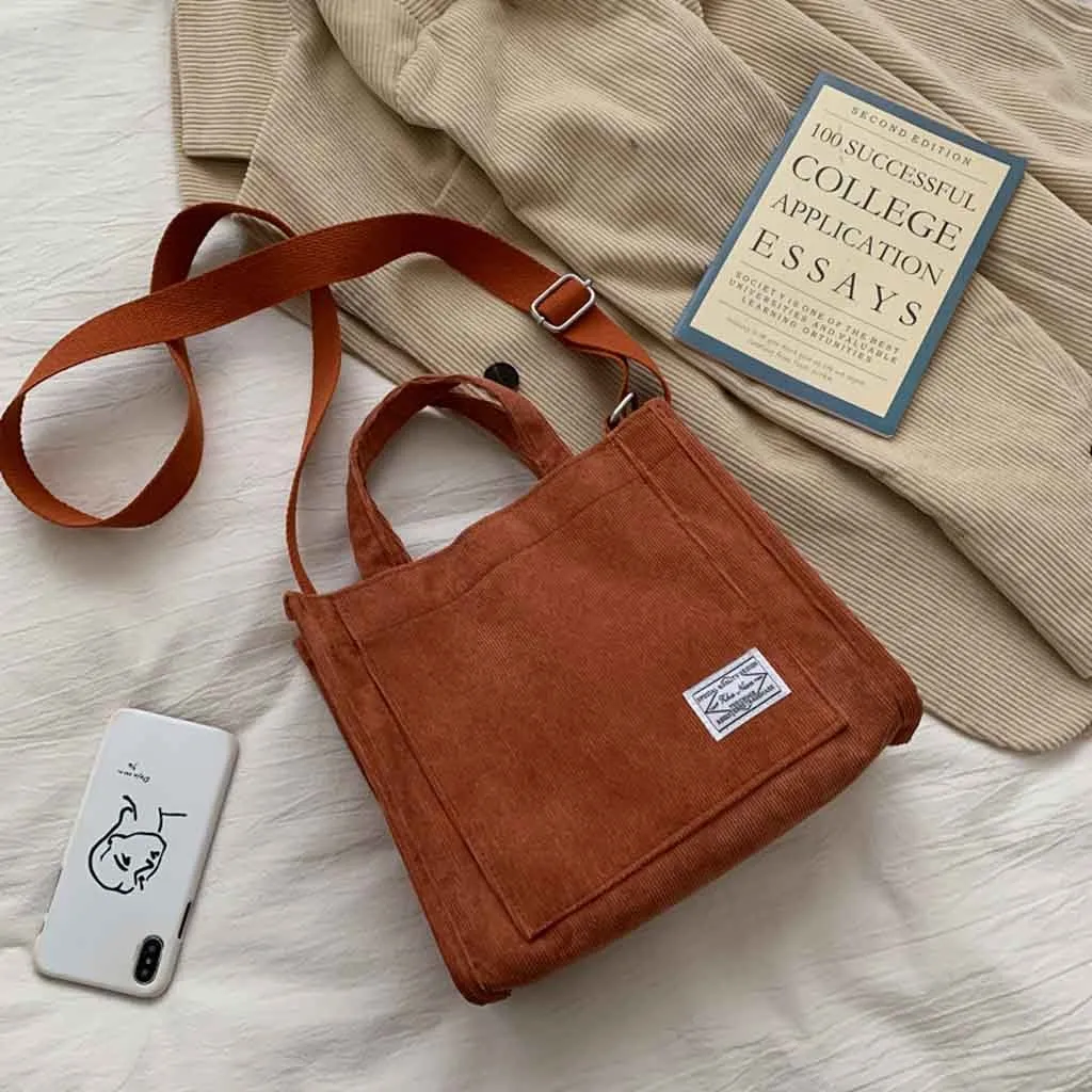 Женская простая Холщовая Сумка, Вельветовая Сумочка, модная повседневная сумка через плечо