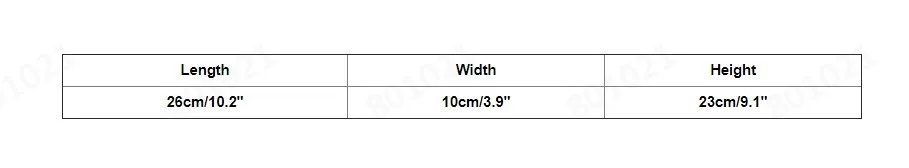 Размер:26См (Д) х10 см (Ш) х23 см (В)/10,2 (Д) х9, 9 (Ш) х9, 1 (в)"