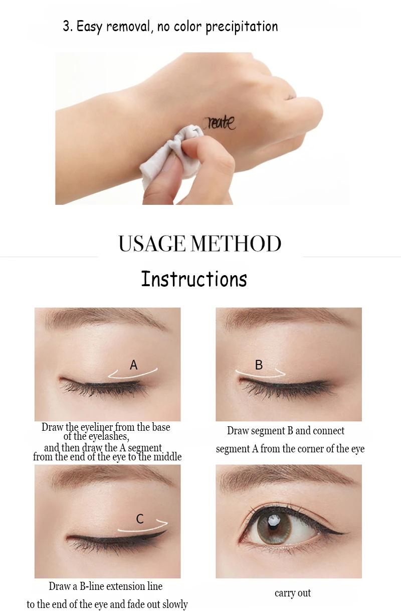 * Быстросохнущий макияж, стойкий, равномерные линии * Водонепроницаемый и устойчивый к поту, устойчив к цветению * Толщину лески можно контролировать, можно сделать макияж по желанию * Легко удаляется, без осадков цвета