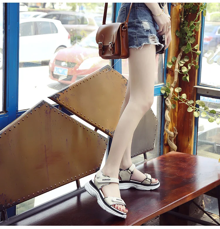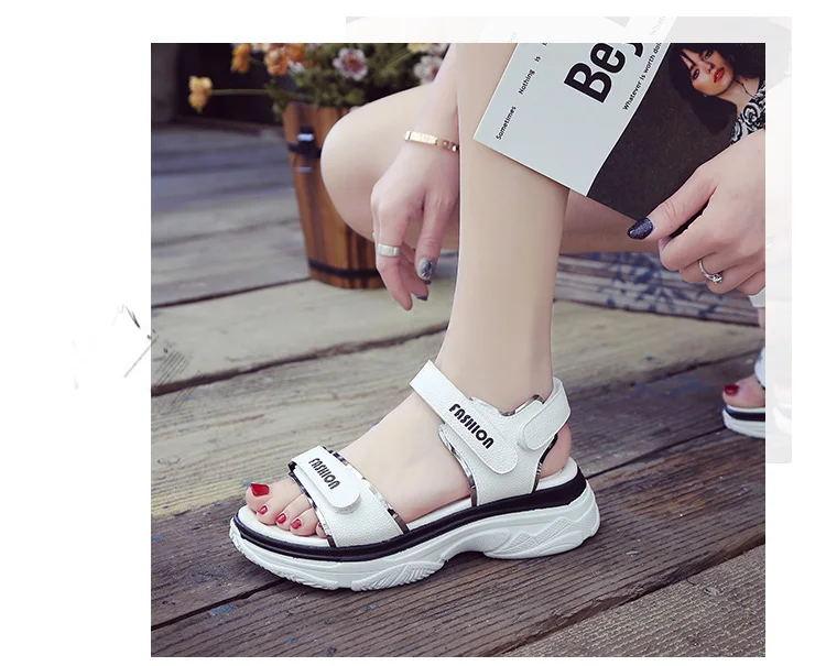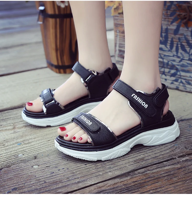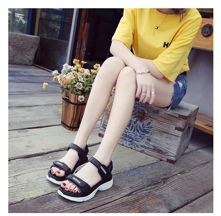 Женские спортивные сандалии, летняя корейская модная обувь на толстой подошве, для студентов, дикая женская обувь, пляжная обувь, 2020