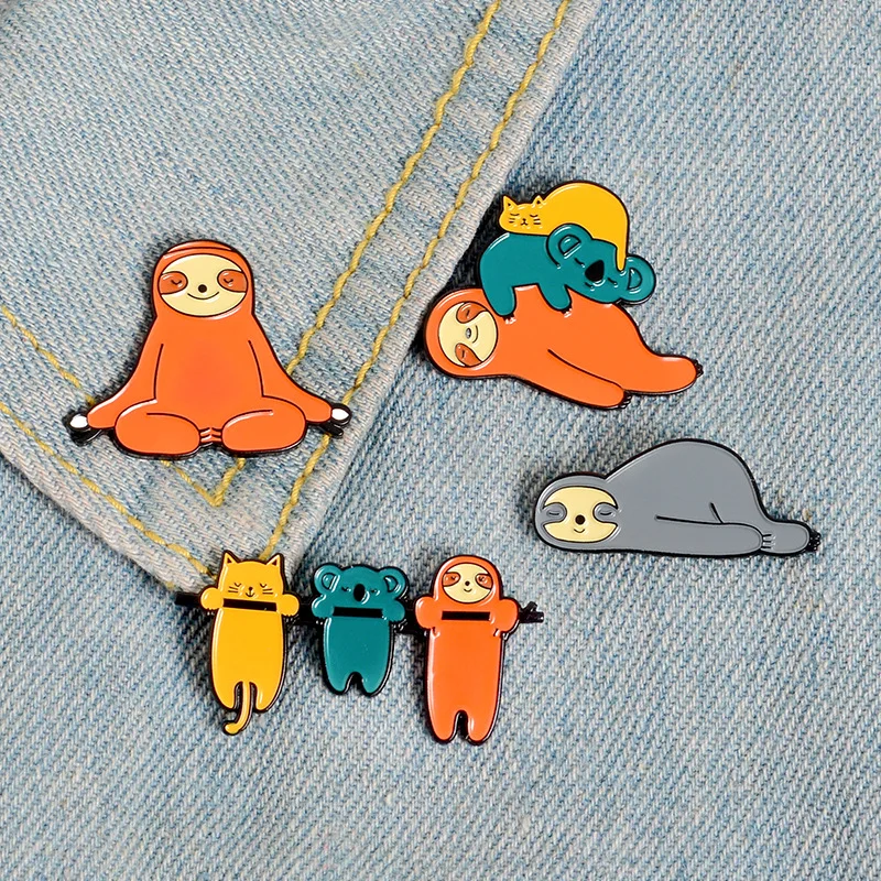 Брошь из металлического сплава с изображением милых животных, Ленив...