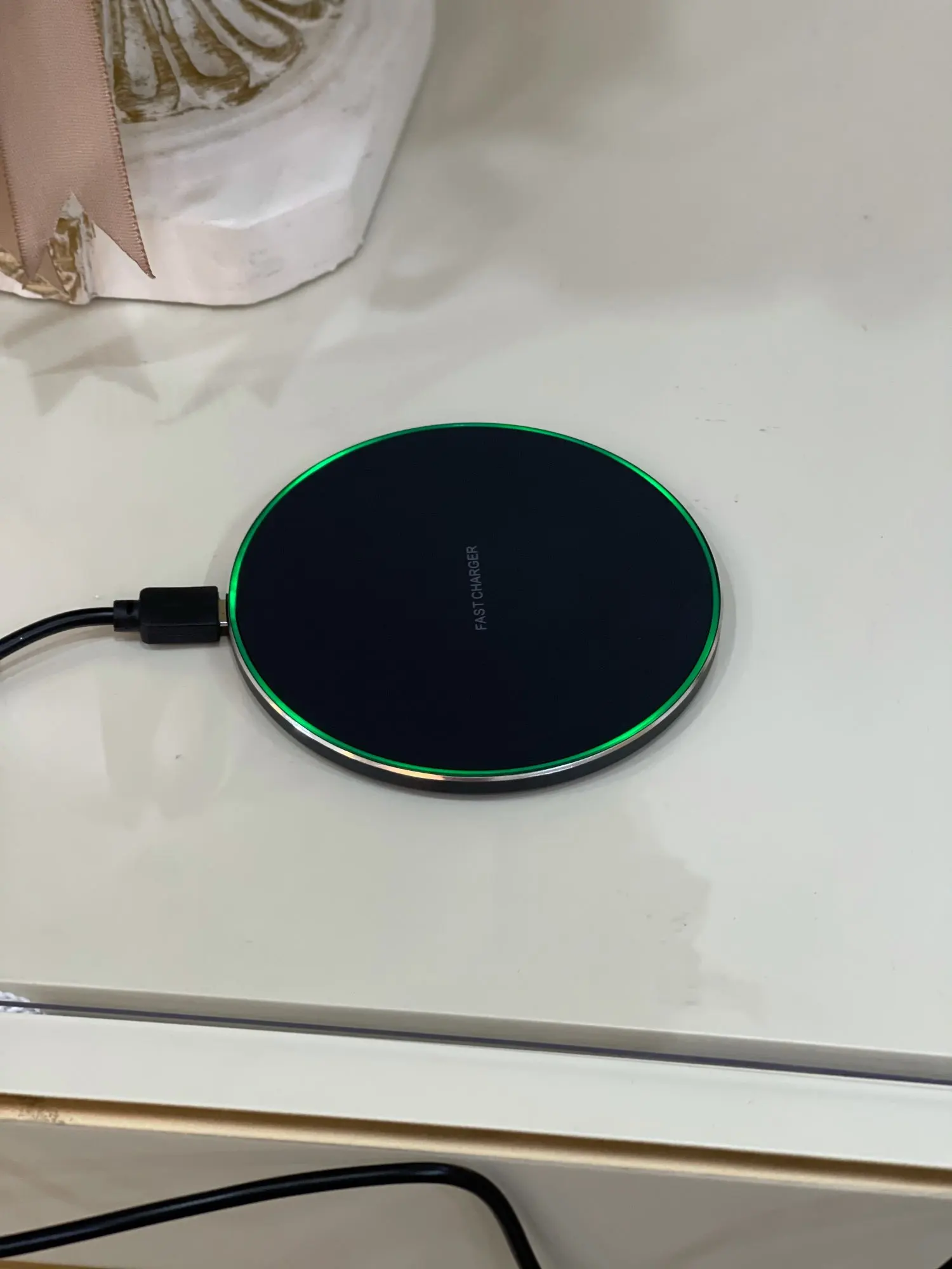 Очень хорошая беспроводная зарядка,имеет красивый светодиод по кругу,и заряжает айфон 8 довольно быстро