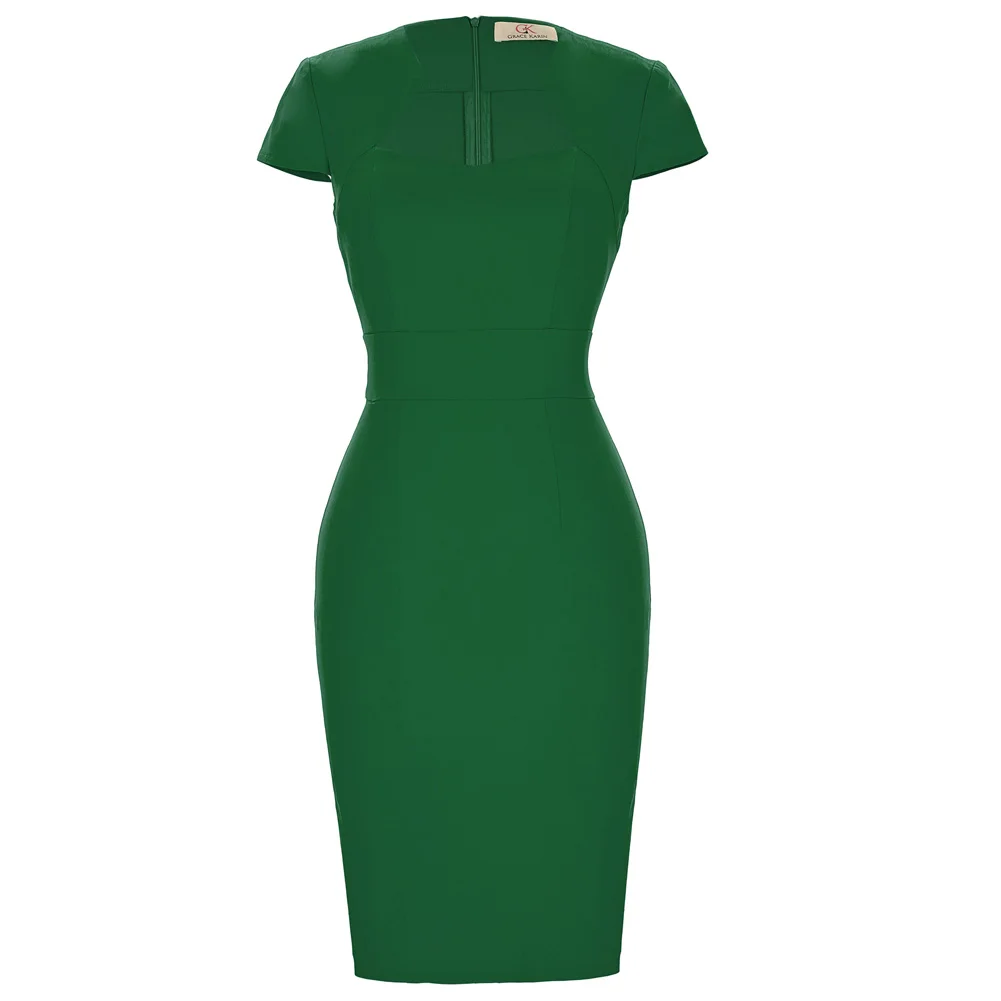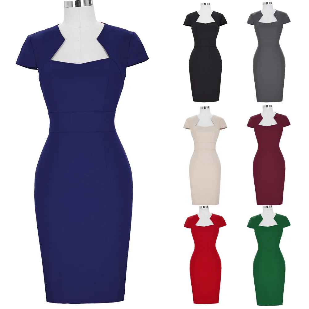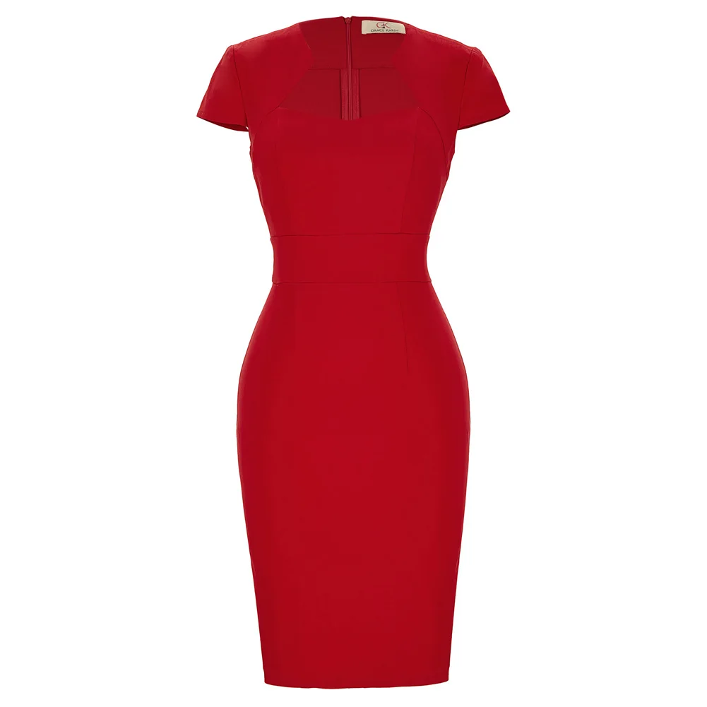 Женское винтажное платье-карандаш с рукавами-крылышками, однотонное офисное платье для работы