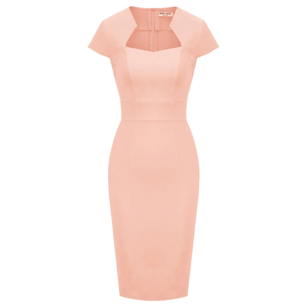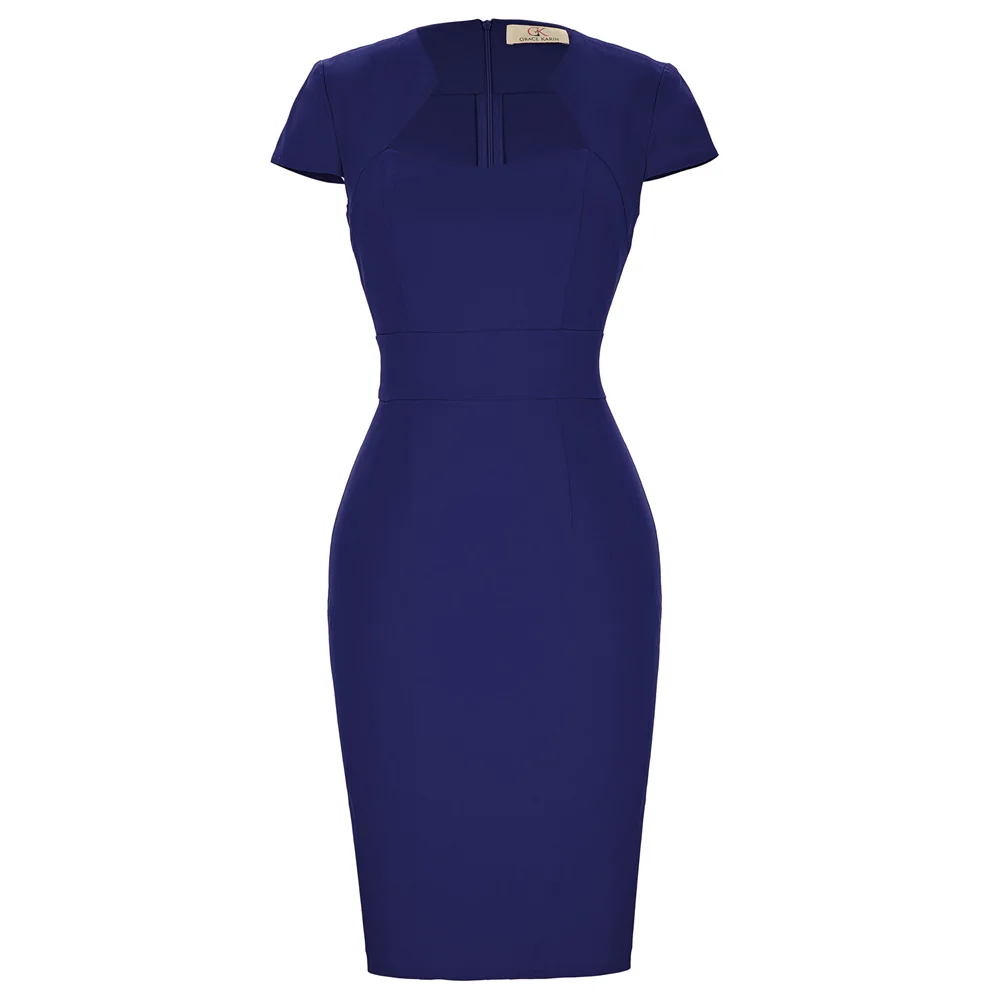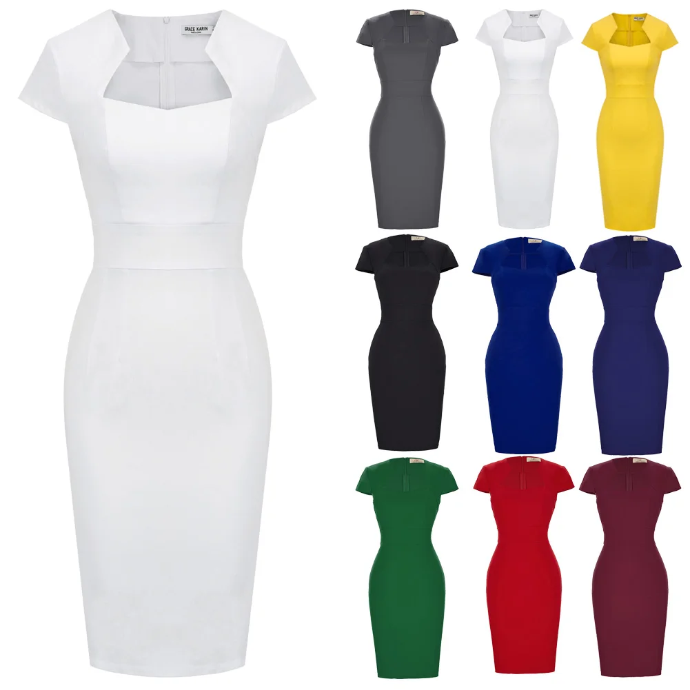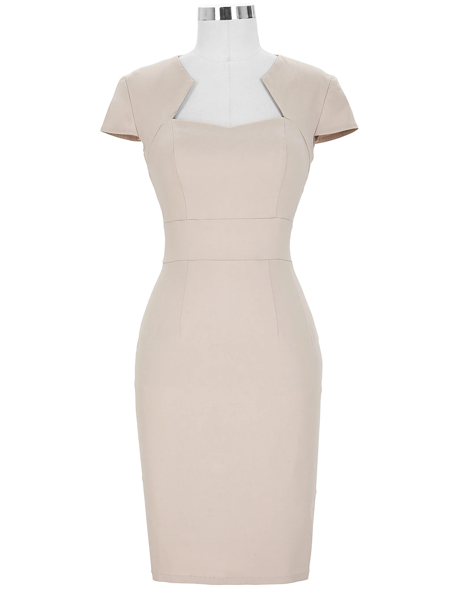 Женское винтажное платье-карандаш с рукавами-крылышками, однотонное офисное платье для работы