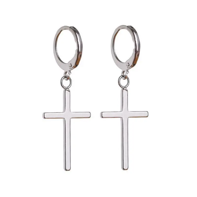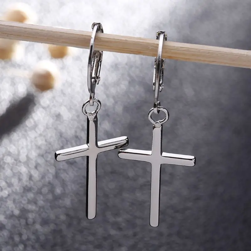 Серьги-гвоздики унисекс, металлические, с подвесками в виде креста,...