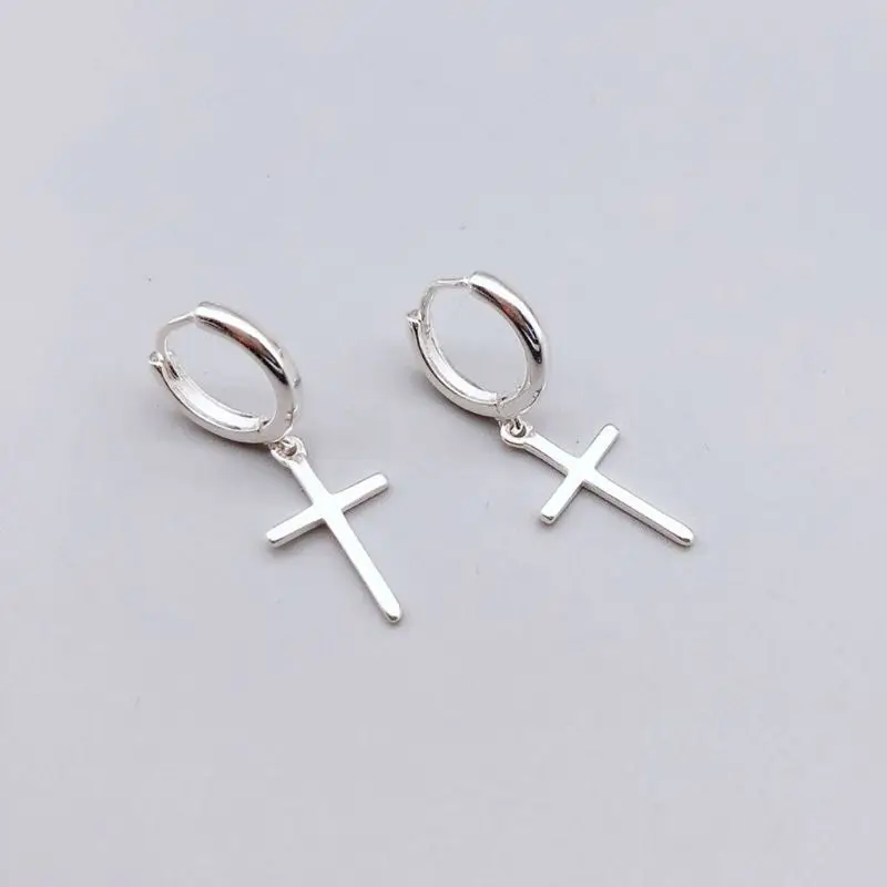 2021 новый простой дизайн личности Крест Huggie обруч Серебряная Се...