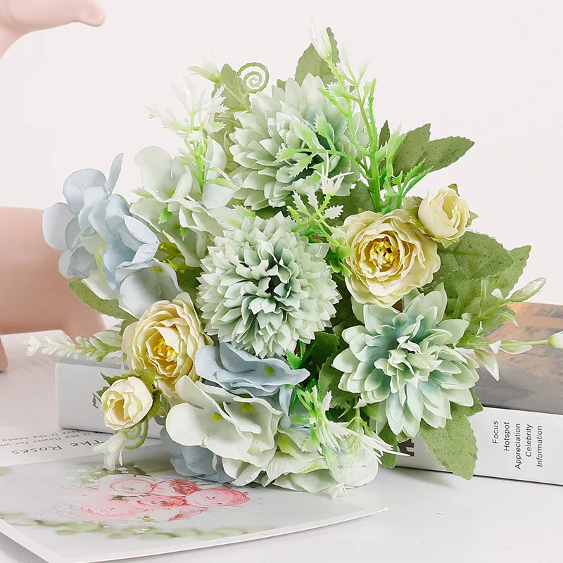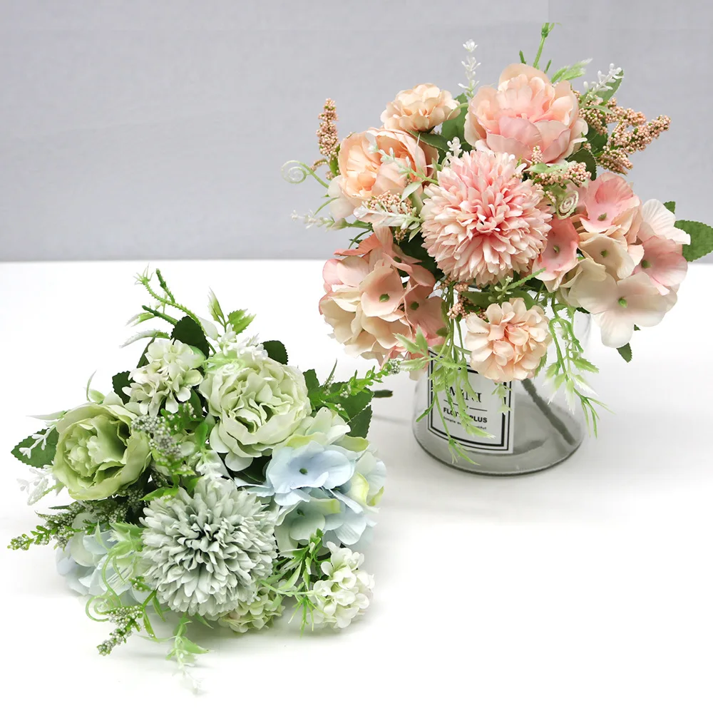 Искусственные цветы гортензии, 7 головок, букет из шелка, цветущий Искусственный Пион, для невесты, ручной цветок, розы, свадебные украшения