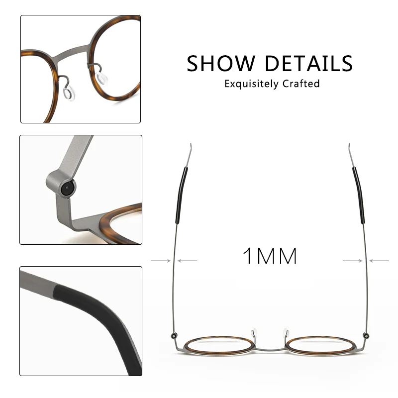 Оправа для очков без винтов для мужчин и женщин, круглые оптические аксессуары для близорукости, Дания, корейский стиль, ацетатный сплав