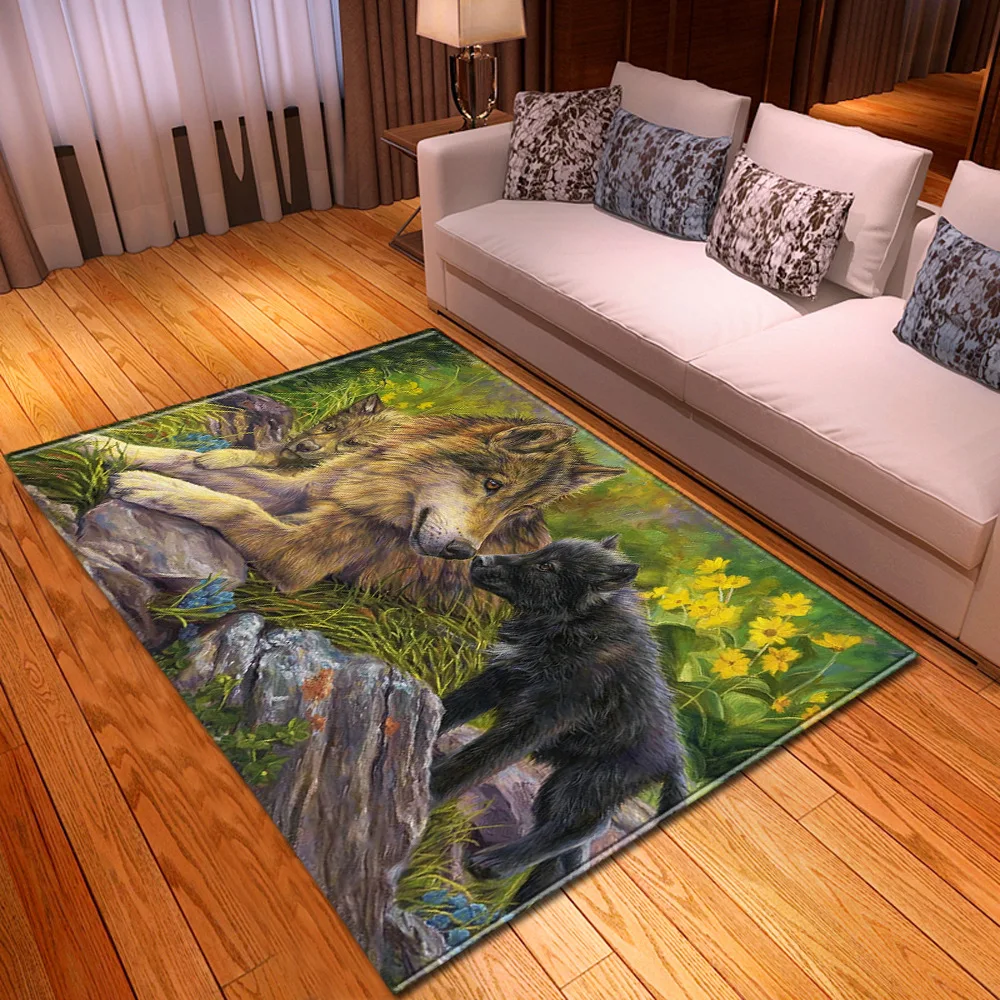 Коврики для спальни с 3D принтом, готические коврики большого размера с волком и пламенем, современные противоскользящие напольные коврики для детской комнаты, домашний декоративный коврик
