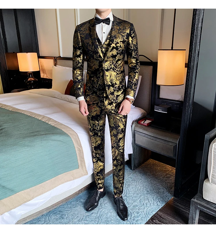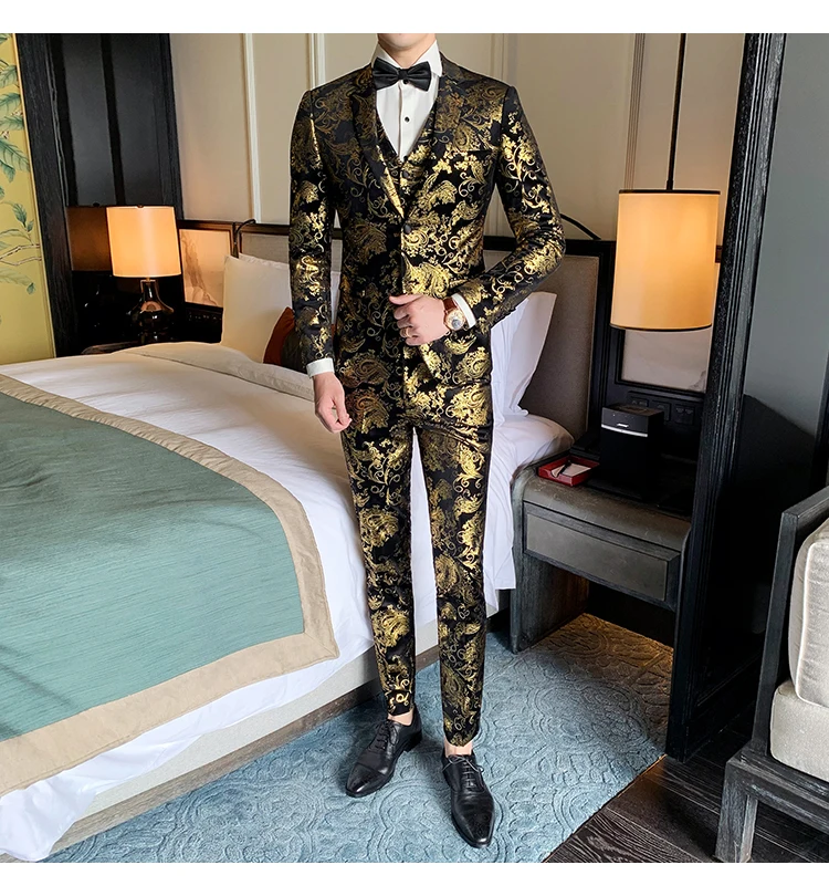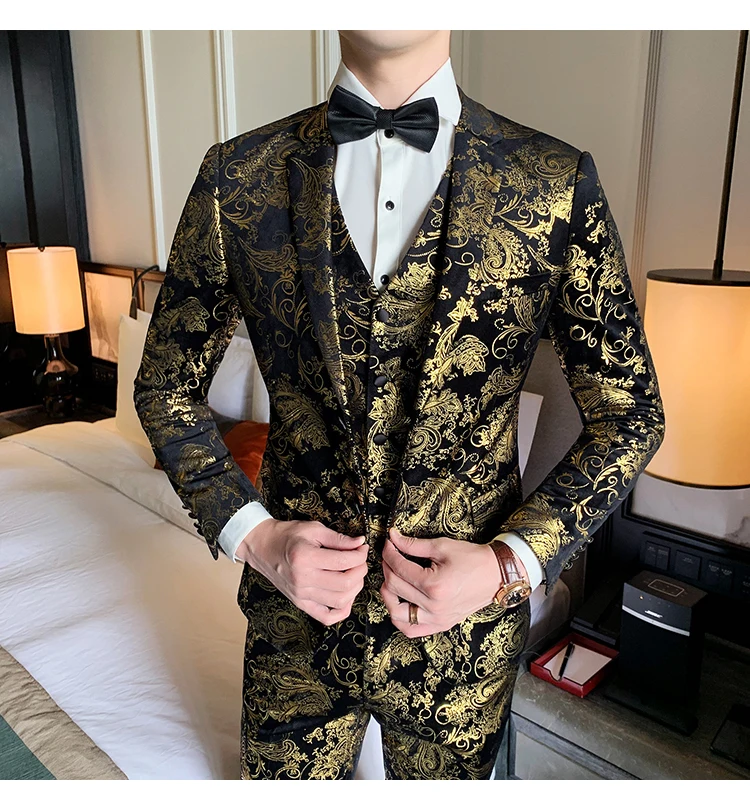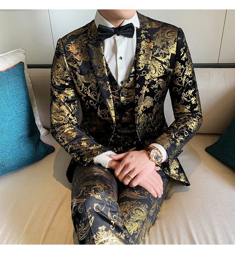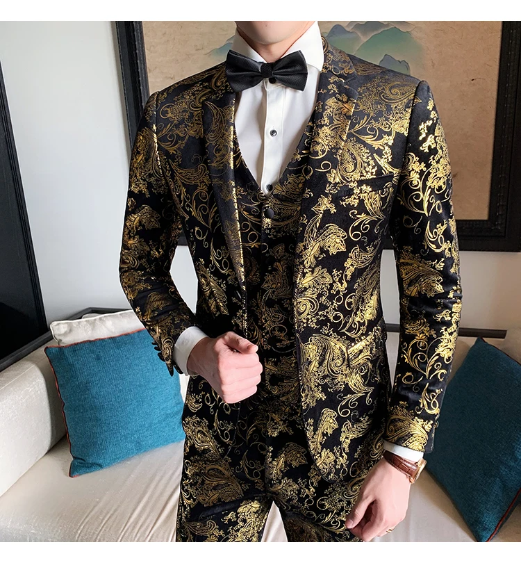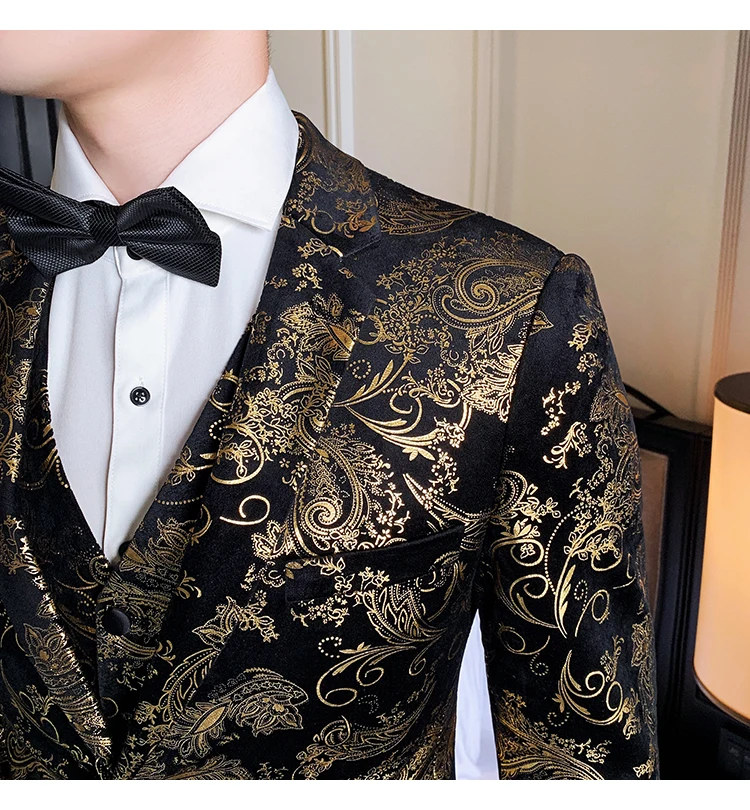 Костюм мужской из блейзера, жилета и брюк, с цветочным принтом