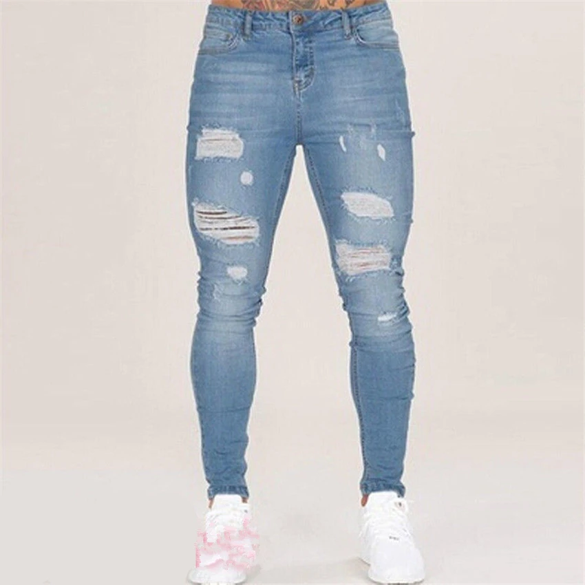 2021 Для мужчин обтягивающие джинсы с дырками Повседневное джинсовы...
