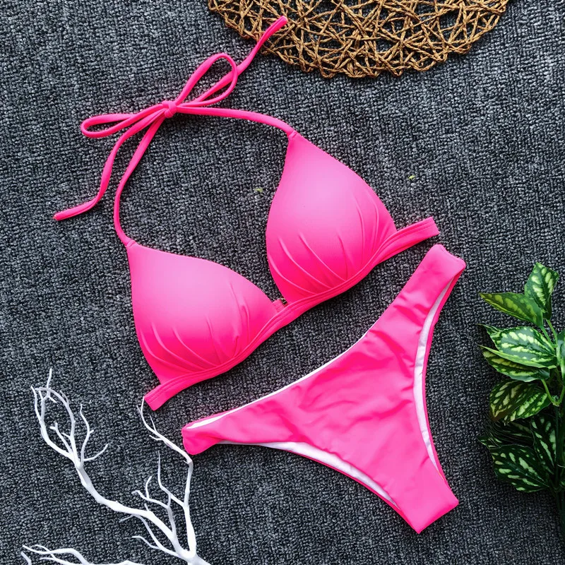 Пикантный однотонный комплект бикини Nadafair, треугольный купальник пуш-ап, женский купальный костюм с низкой талией, 2020 бикини, купальный костюм для женщин