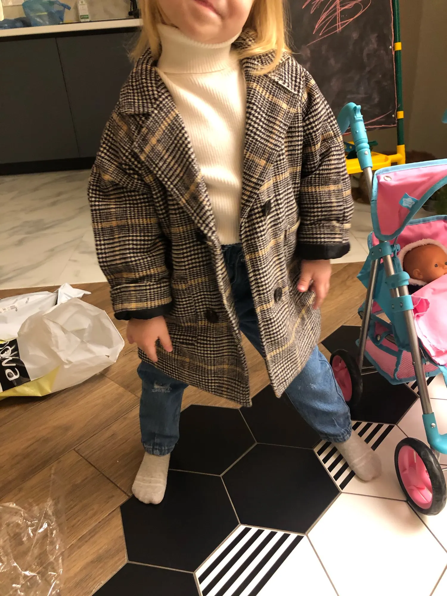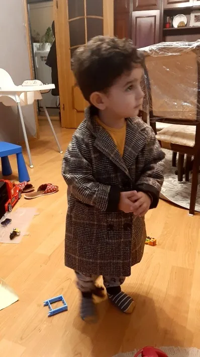 Шикарное пальто, отличный продавец. посоветовал взять на два годика 3т, тк пальто оверсайз и можно носить несколько сезонов. сейчас подвернули рукава и носим. равнодушных нет, все любуются) по сезонности - на теплую осень. пуговицы конечно пришиты абы как, но это не критично. выдернула несколько ниток торчащих, попавших в шов. на фото малышу два года, рост 86см.